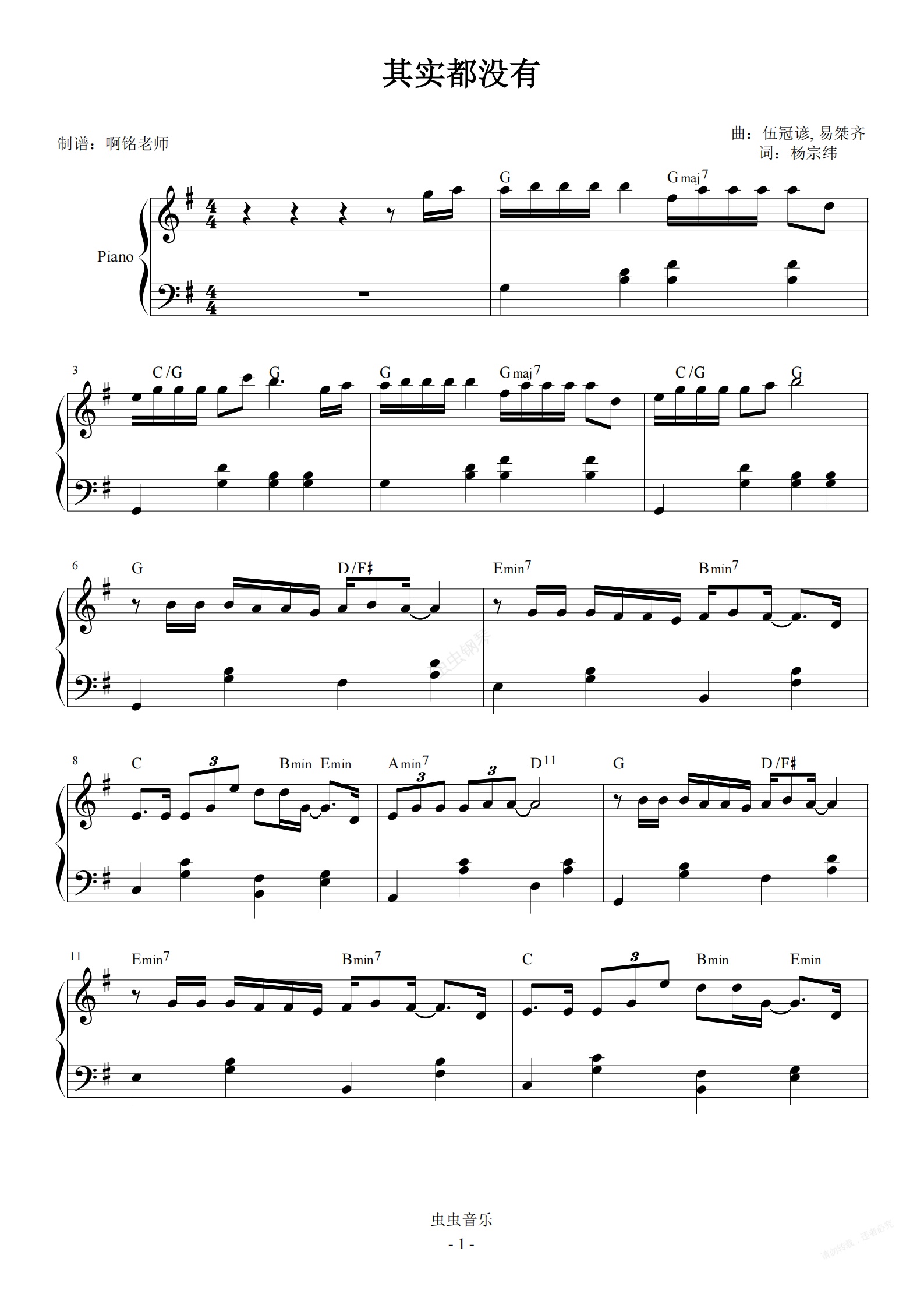钢琴谱:其实都没有【简易 动听】
