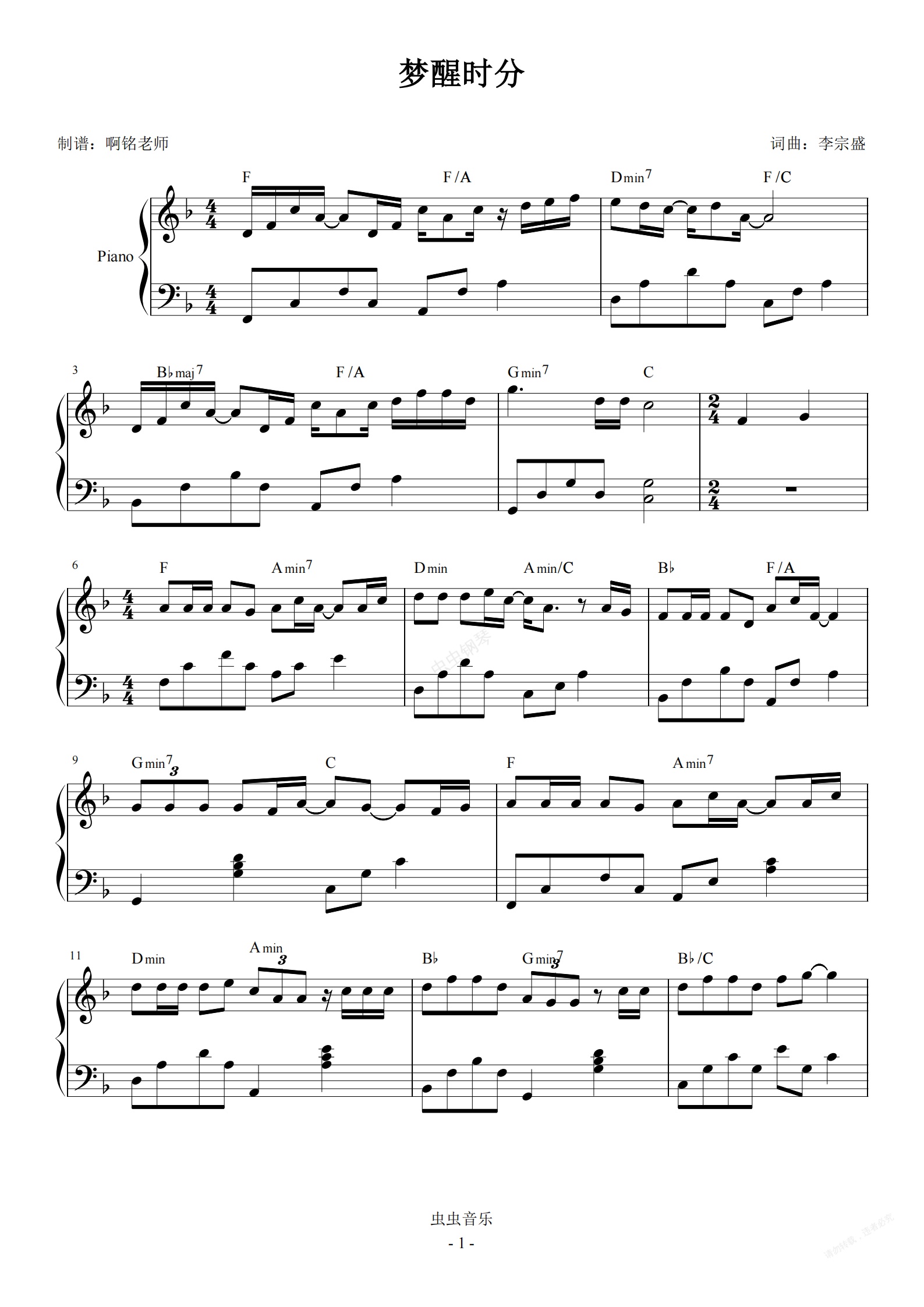 钢琴谱:梦醒时分 【怀旧经典 简易动听】