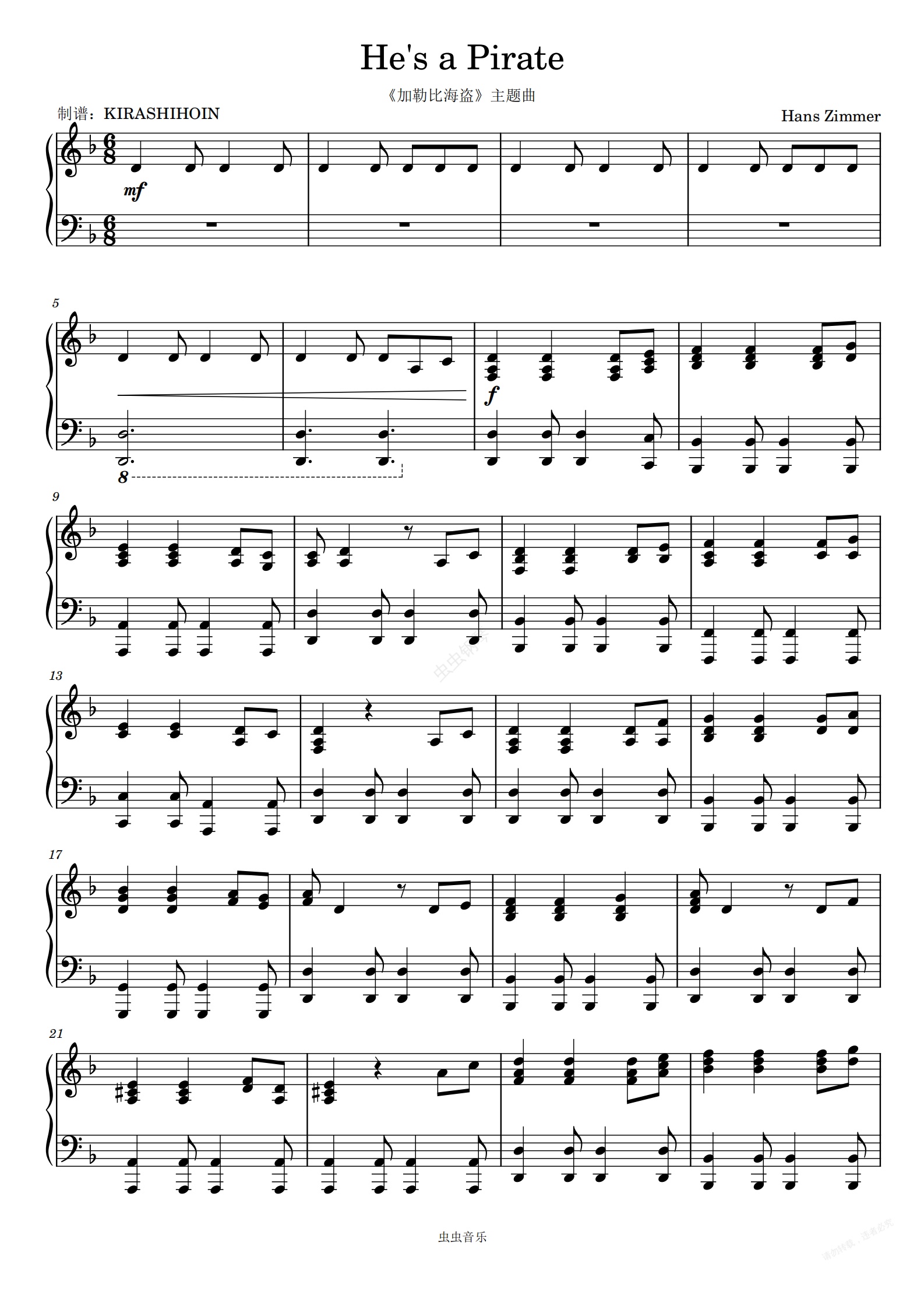 钢琴谱:加勒比海盗/He's a Pirate-[简易版](《加勒比海盗》主题曲)