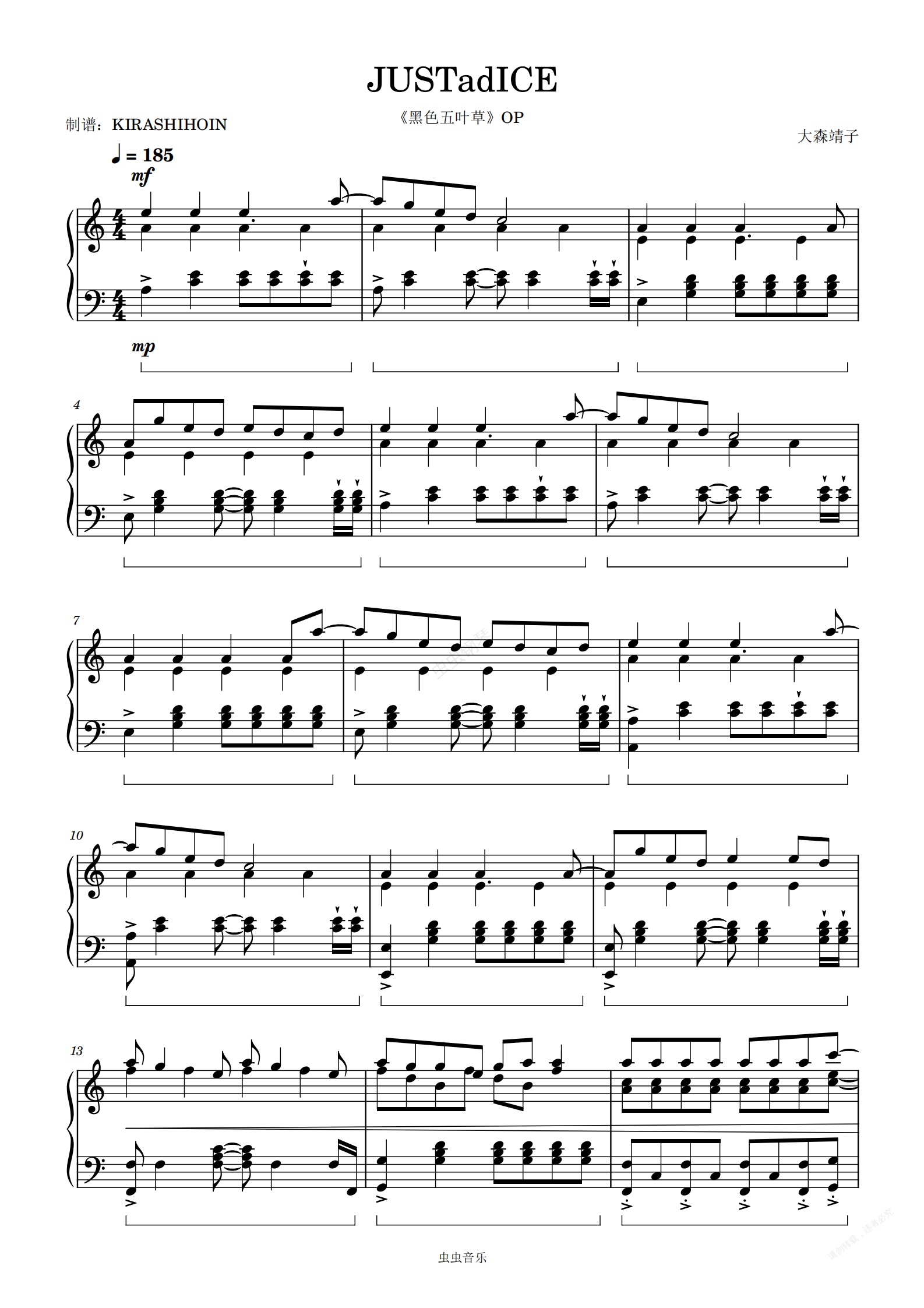 钢琴谱:JUSTadICE(《黑色五叶草》OP)