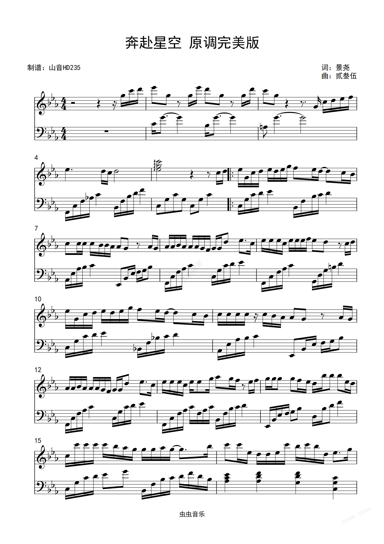 钢琴谱:奔赴星空 原调完美版