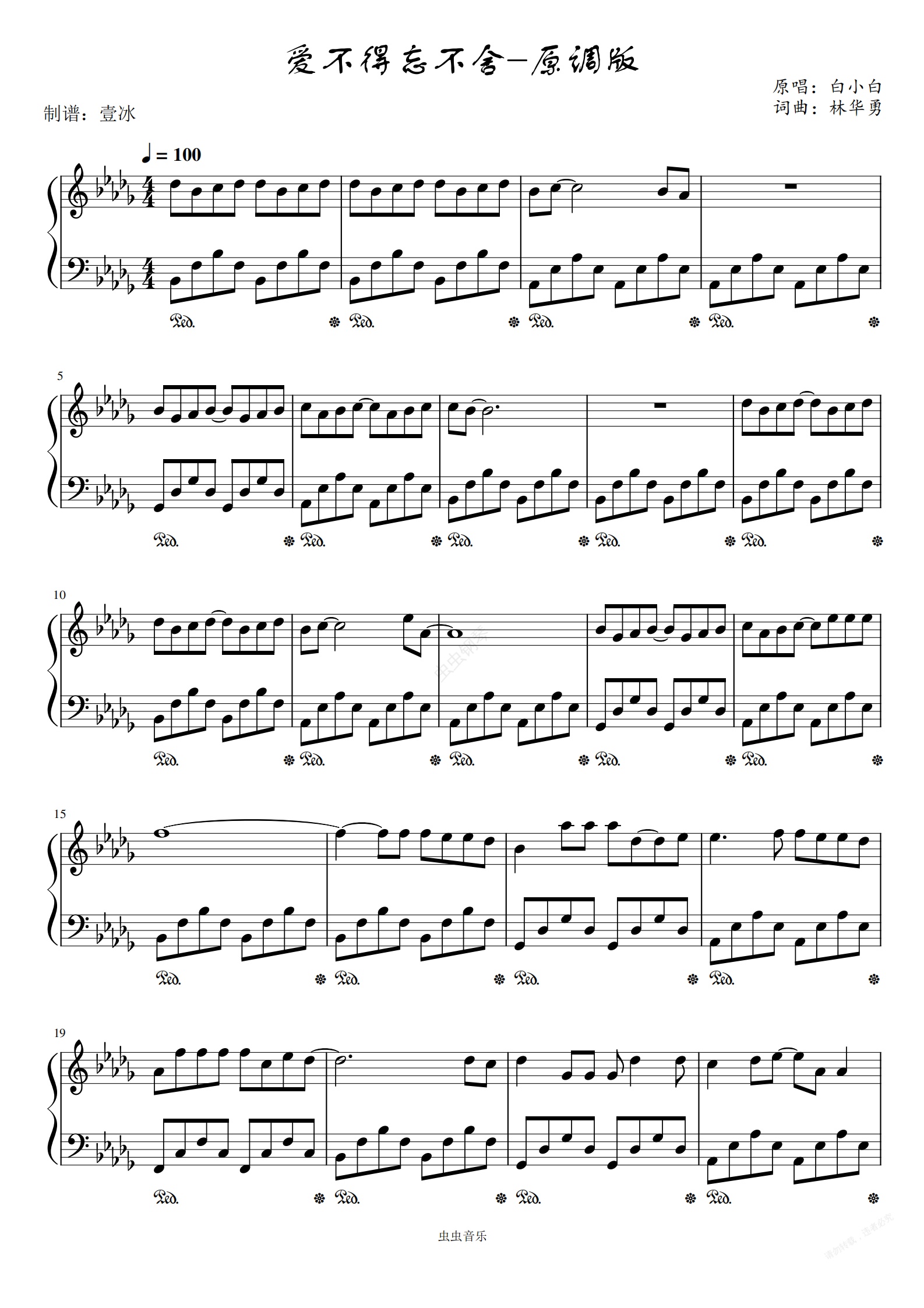 钢琴谱:爱不得忘不舍//白小白-原调版