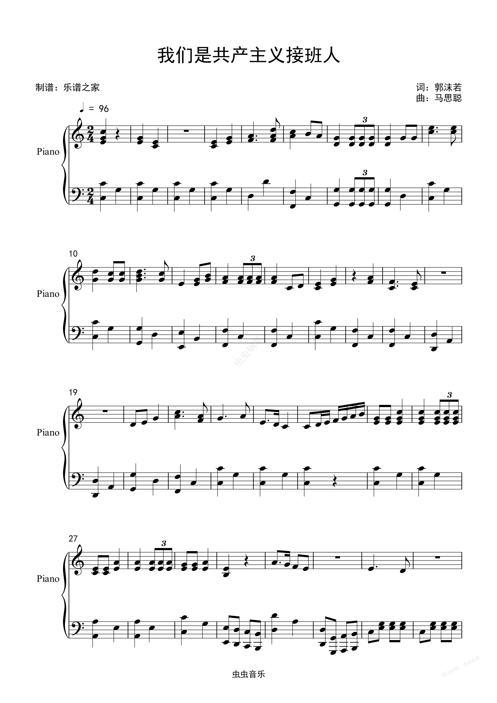 钢琴谱:我们是共产主义接班人 马思聪 独奏高清红歌钢琴谱 送示范音频