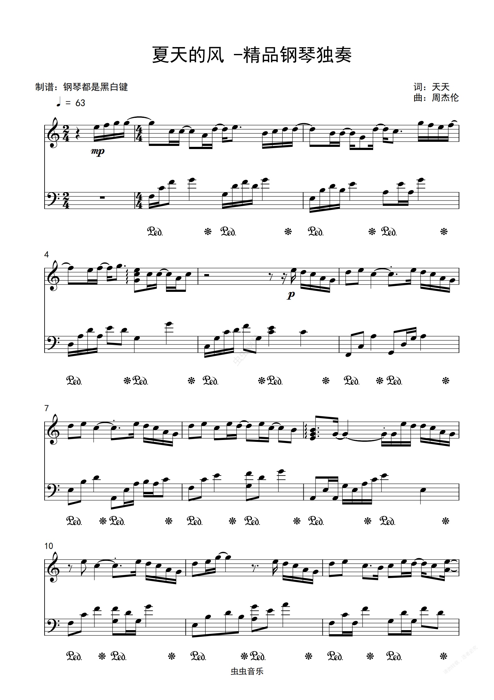 钢琴谱:夏天的风 超好听精品钢琴独奏