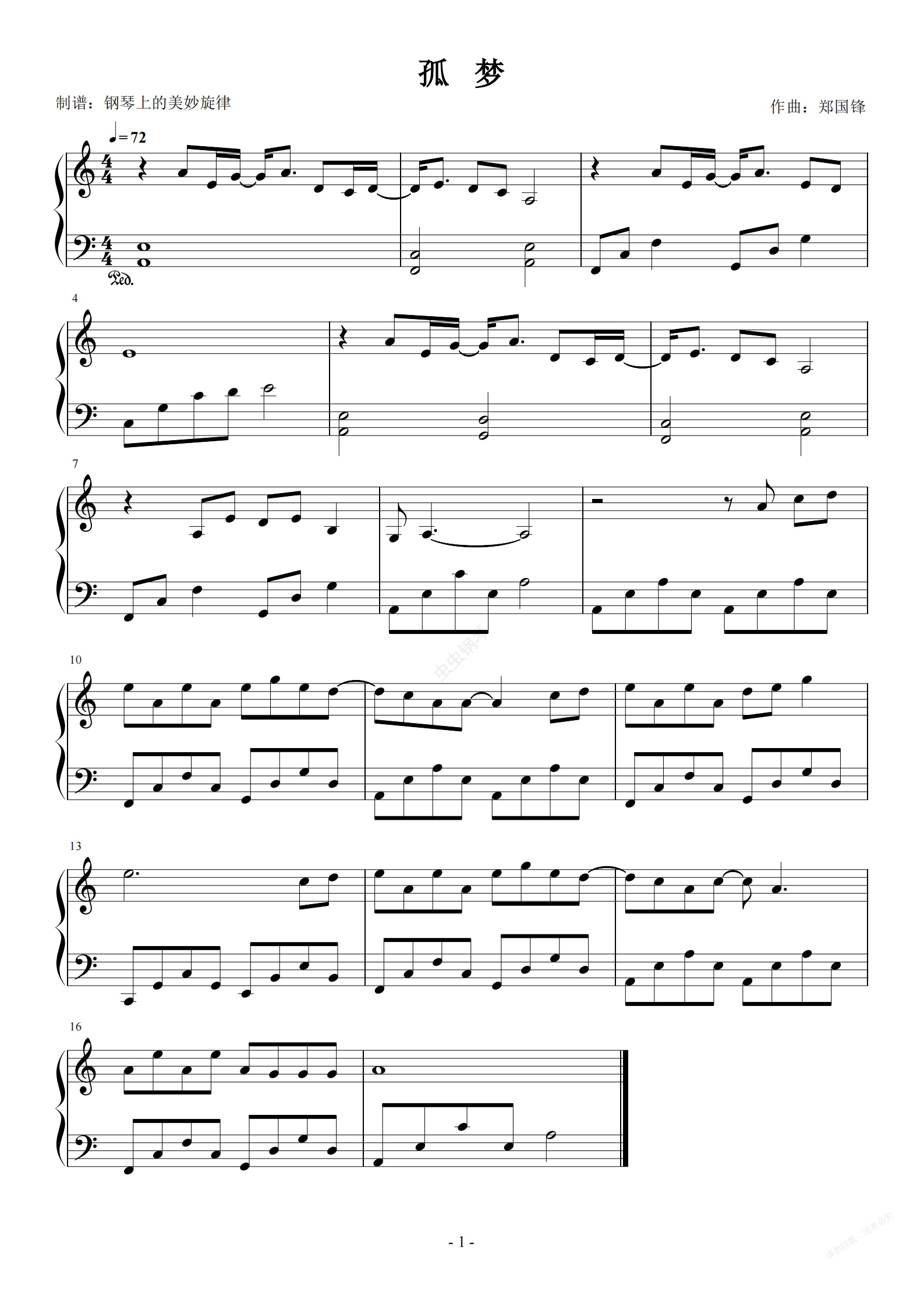 钢琴谱:孤梦//山河令插曲 C调简易版 易上手  免费谱
