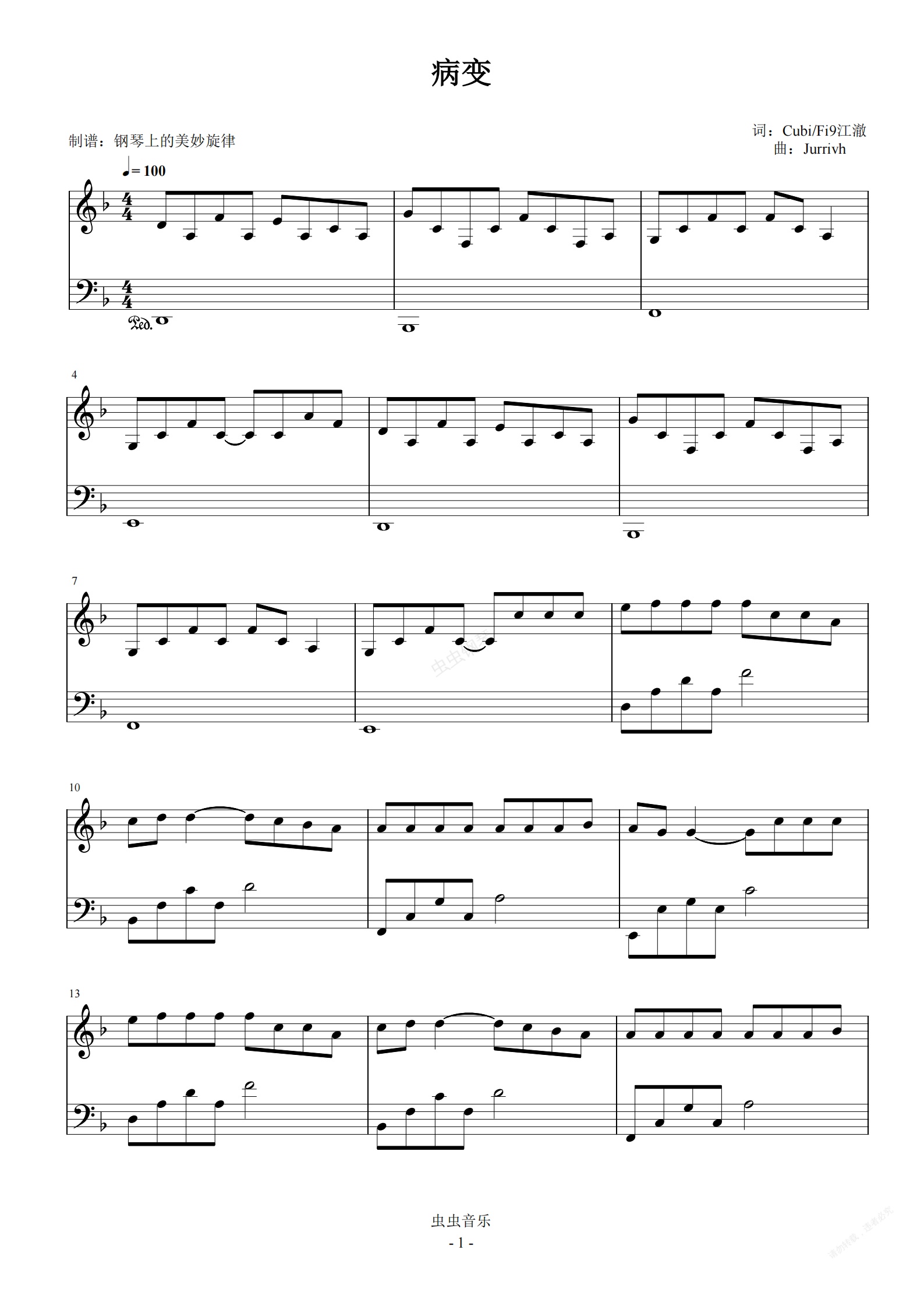 钢琴谱:BINGBIAN病变 (女声简易版)