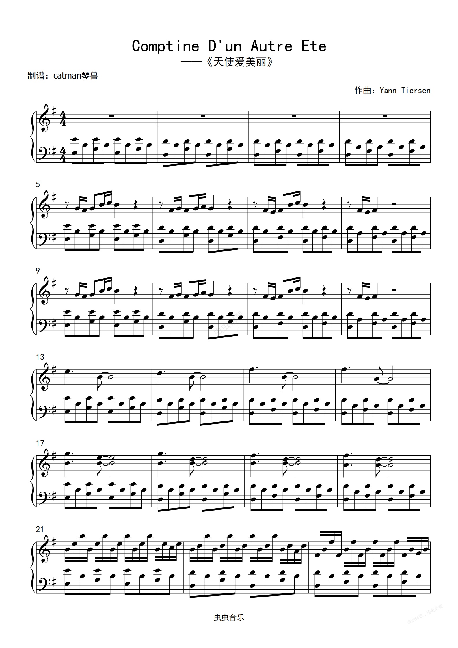 钢琴谱:天使爱美丽Comptine D'un Autre Ete-琴兽版