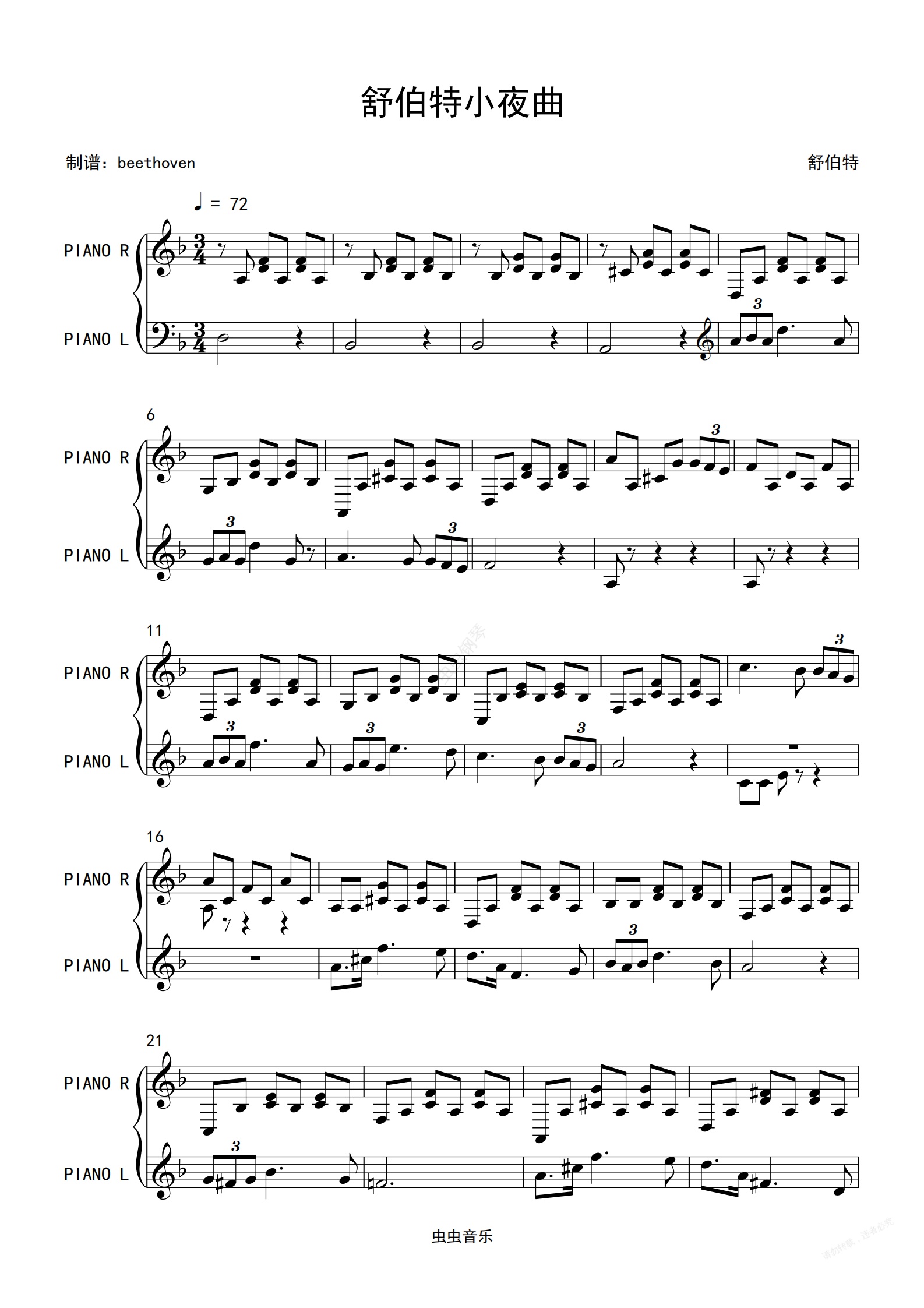 钢琴谱:舒伯特小夜曲《小夜曲》