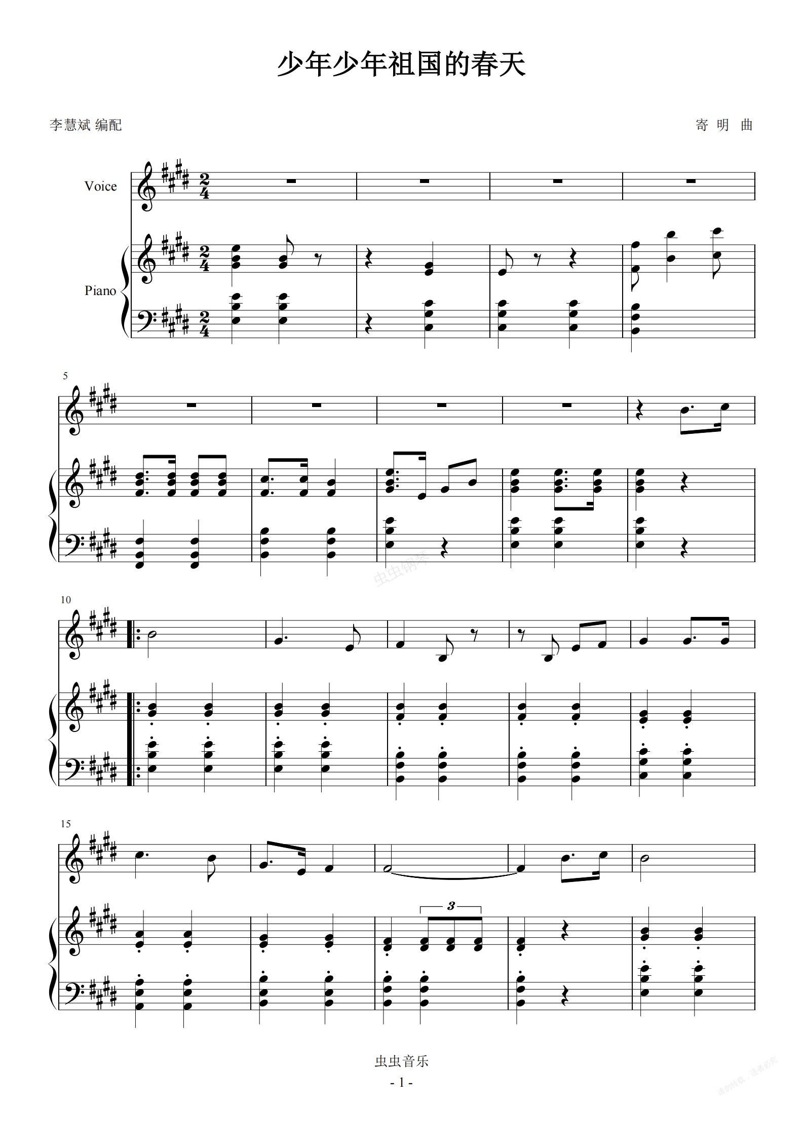 钢琴谱:少年少年祖国的春天 合唱伴奏
