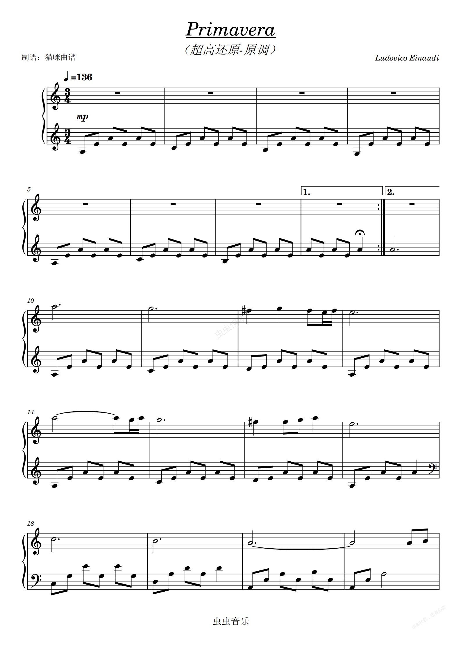 钢琴谱:《Primavera》超高还原-C调(Ludovico Einaudi)