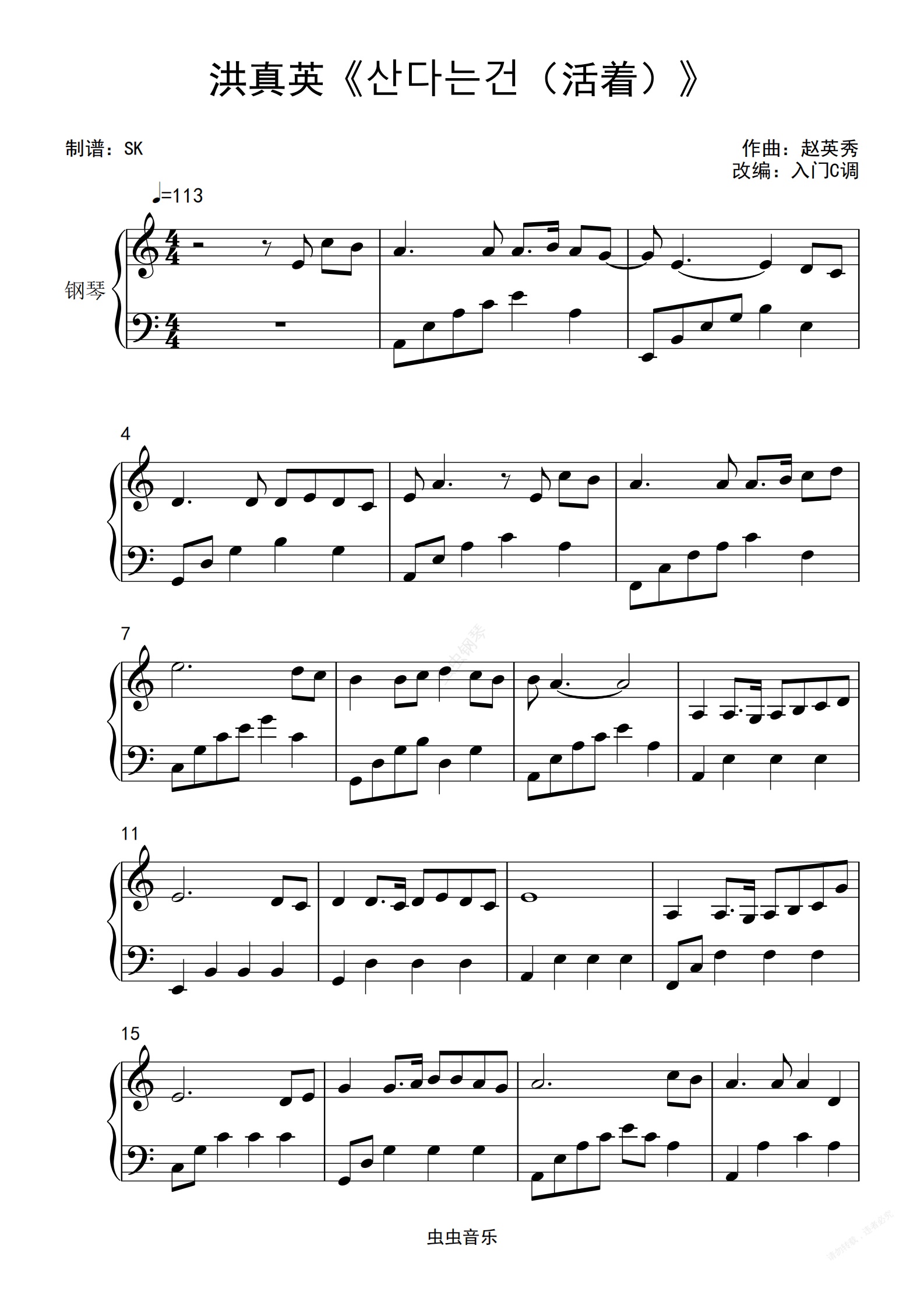 钢琴谱:洪真英《산다는건(活着)》抖音C调简单版