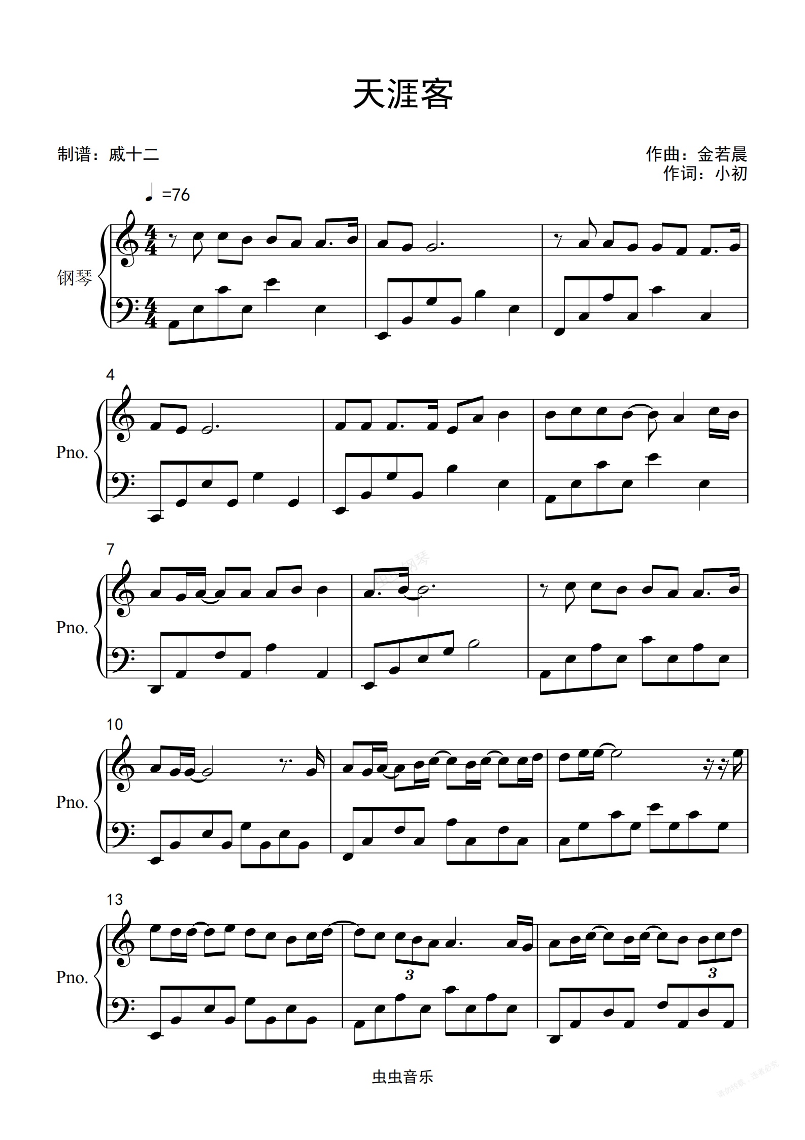 钢琴谱:天涯客《山河令》片尾曲-C调简单版