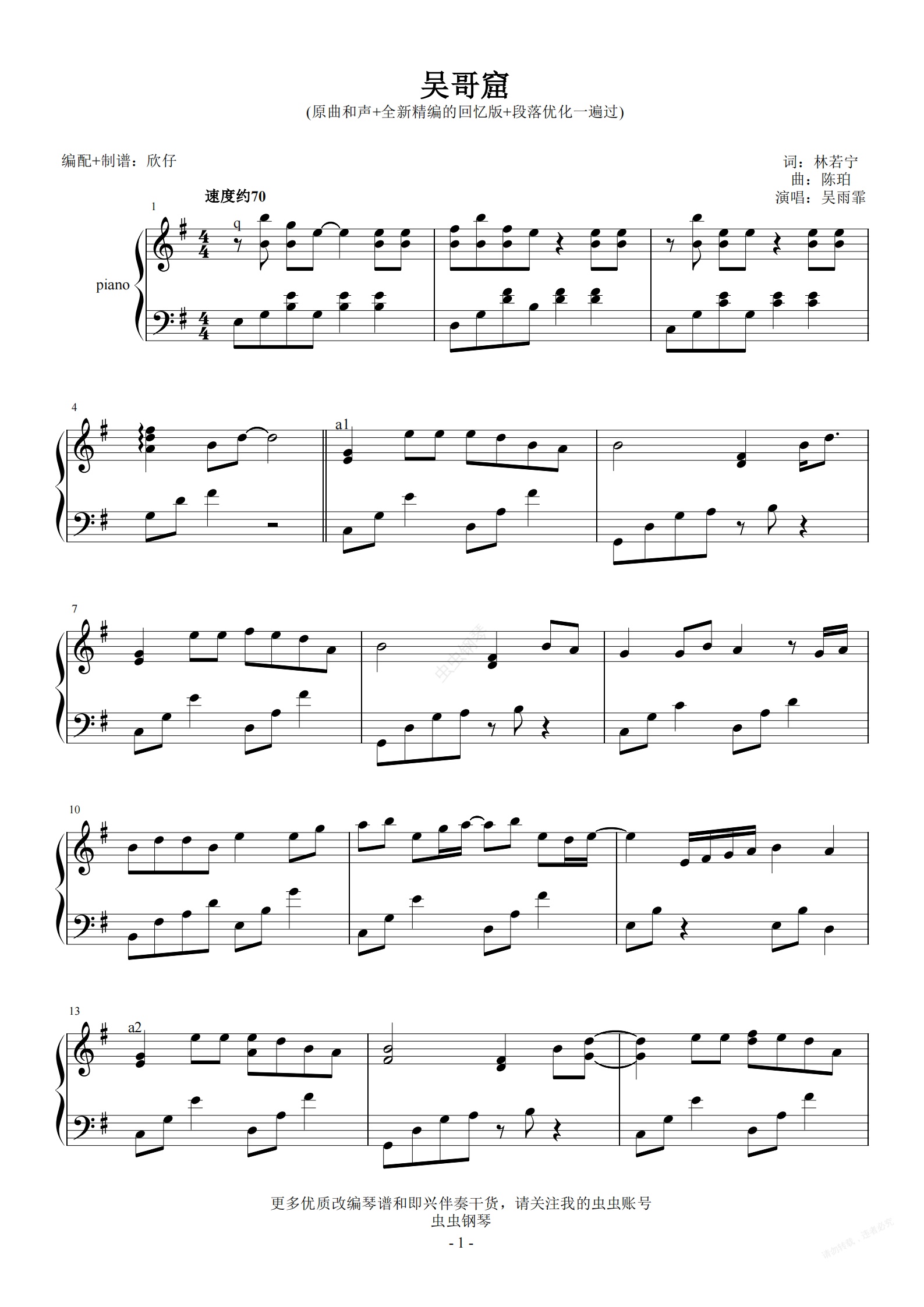 钢琴谱:吴雨霏-G《吴哥窟》(原曲和弦+精编回忆版+段落优化一遍过)