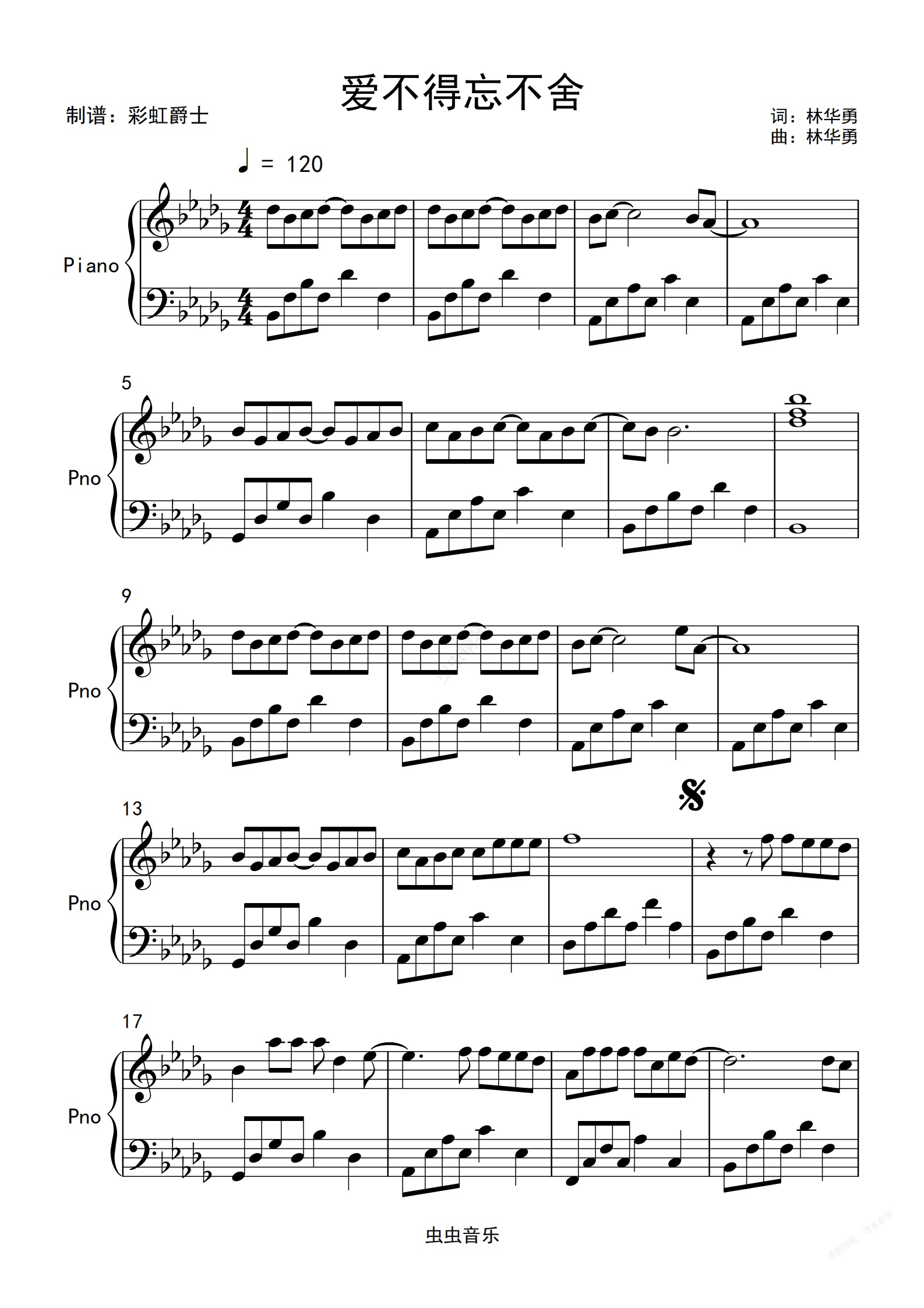钢琴谱:爱不得忘不舍 抖音 原调简单版