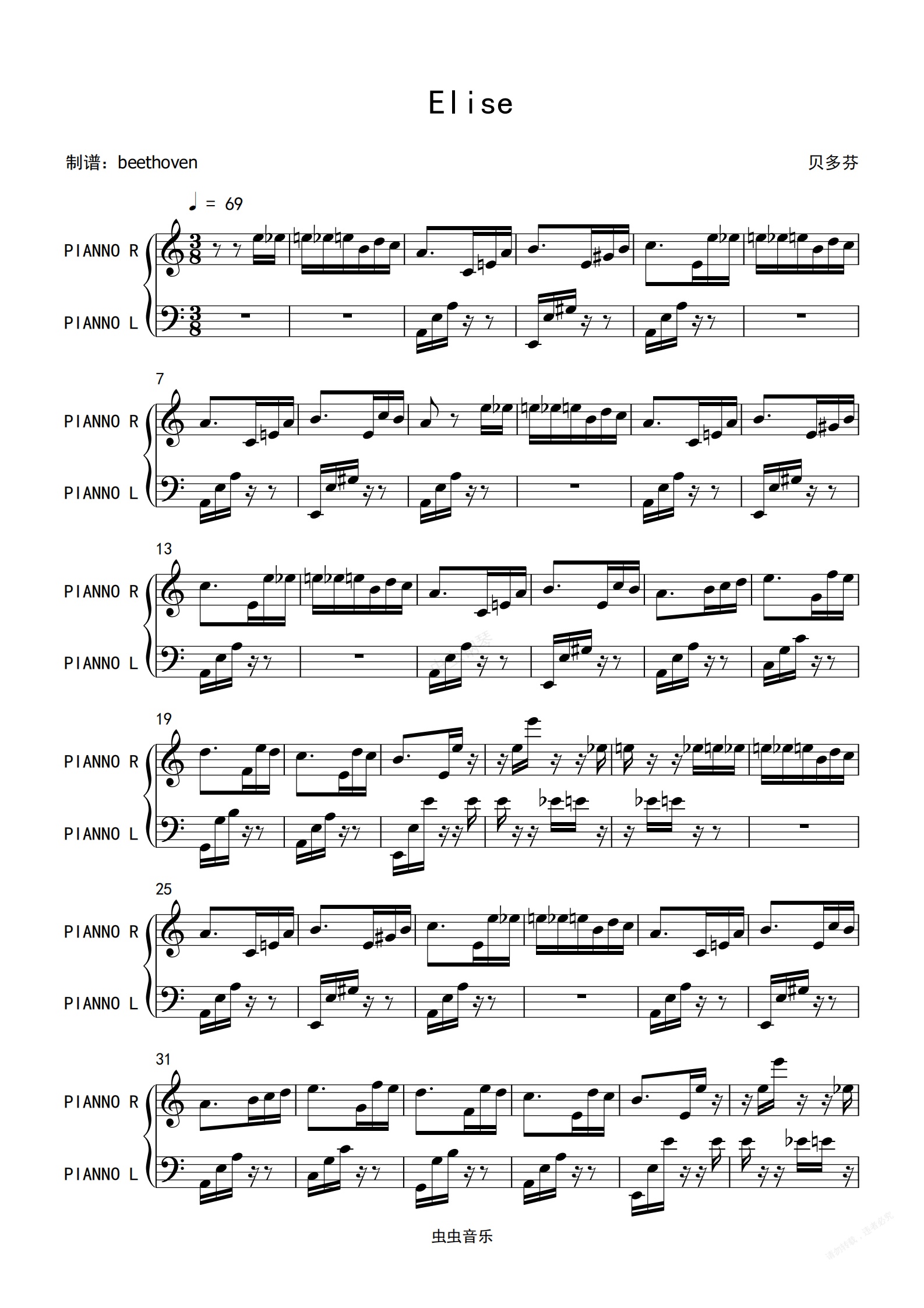 钢琴谱:致爱丽丝(for Elise)-beethoven