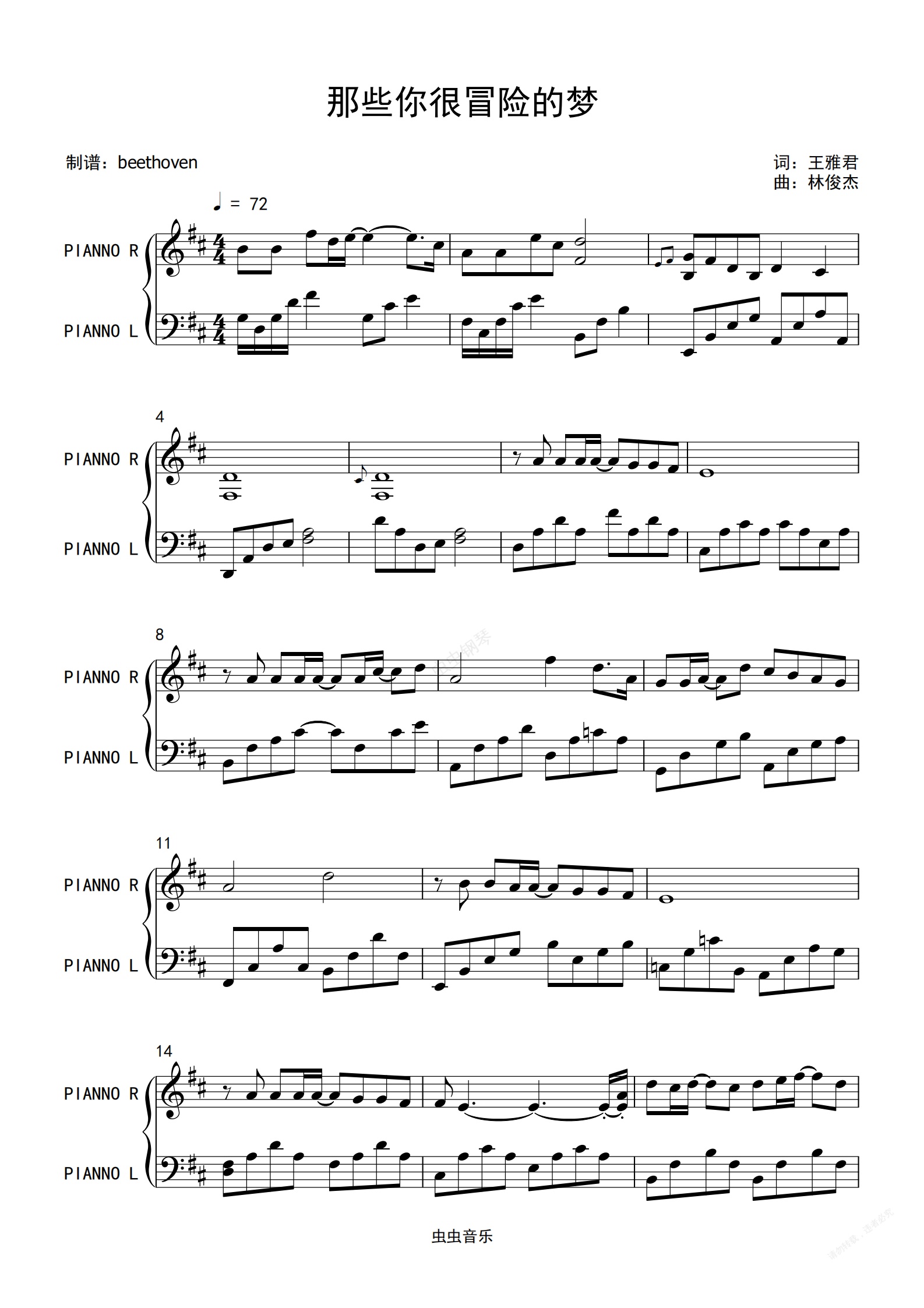 钢琴谱:那些你很冒险的梦-林俊杰钢琴独奏