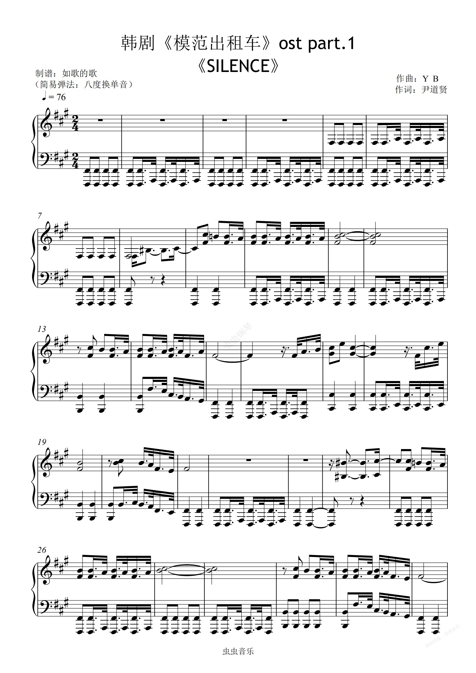 钢琴谱:韩剧《模范出租车》钢琴还原ost part 1《Silence》