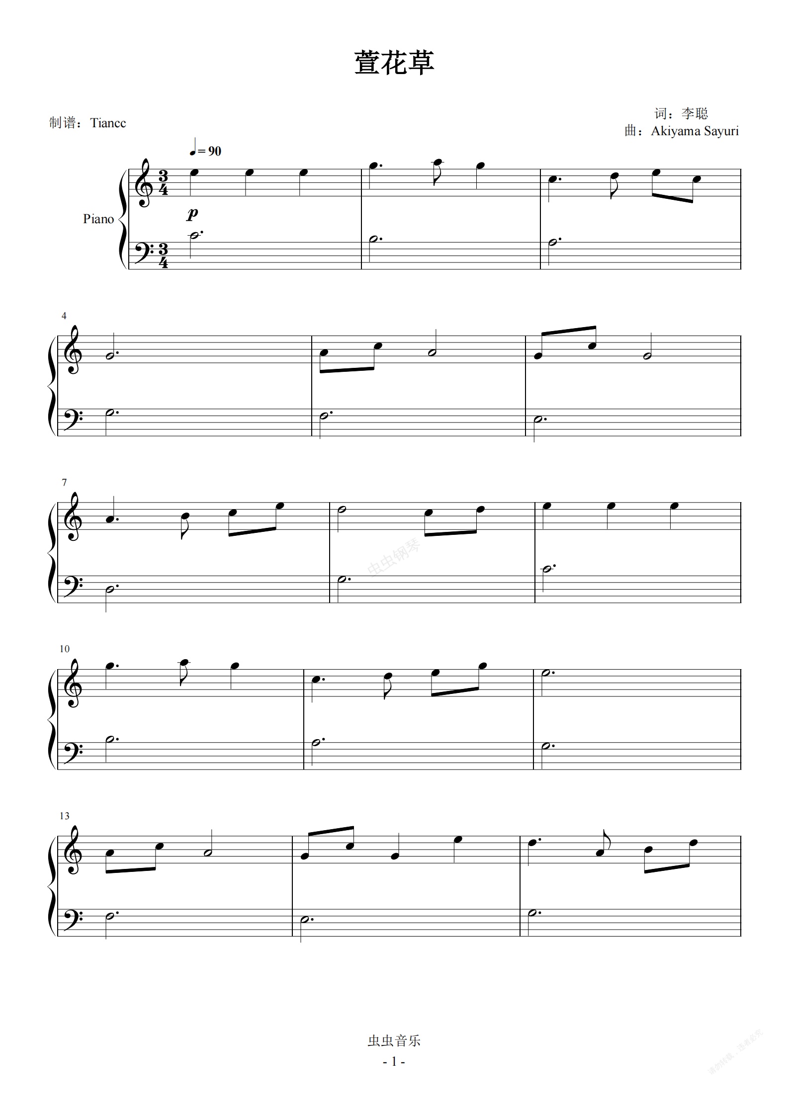 钢琴谱:《萱花草》教学专用,小汤3难度,李焕英片尾曲