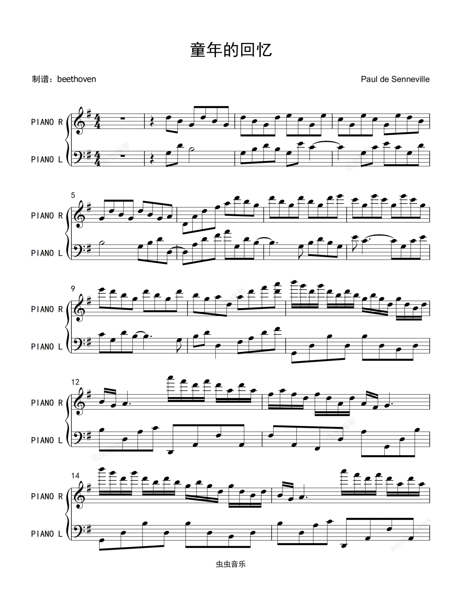 钢琴谱:《童年的回忆》钢琴独奏-理查德.克莱德曼