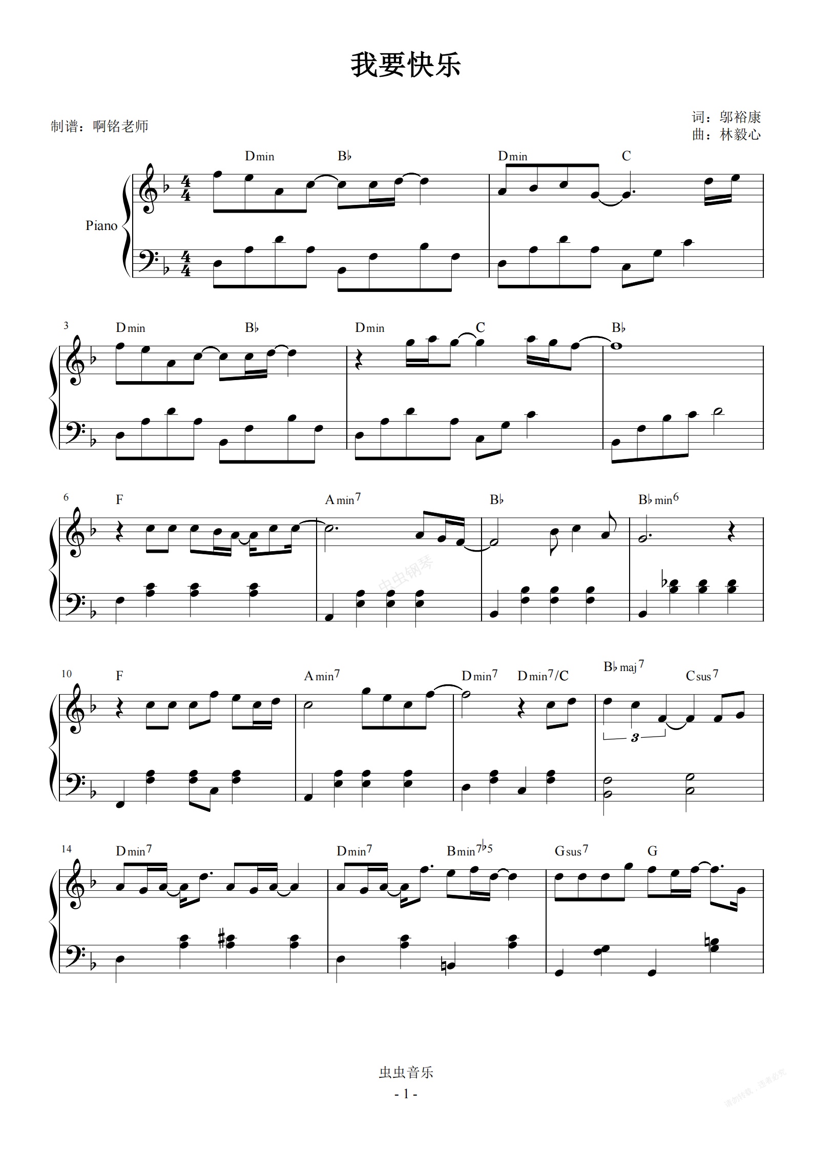 钢琴谱:我要快乐【简易 动听】