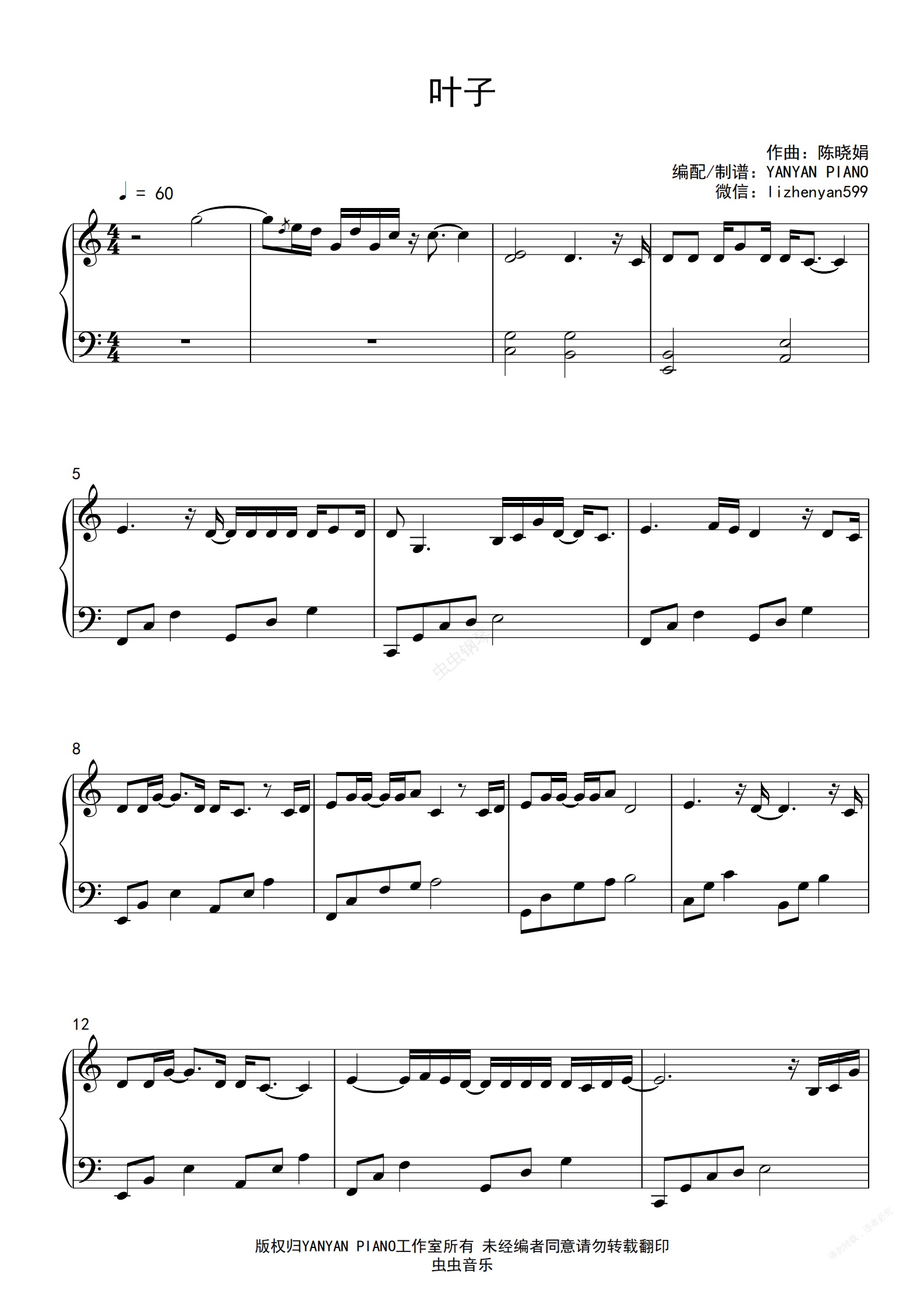 钢琴谱:蔷薇之恋【叶子】阿桑(黄嬿璘)
