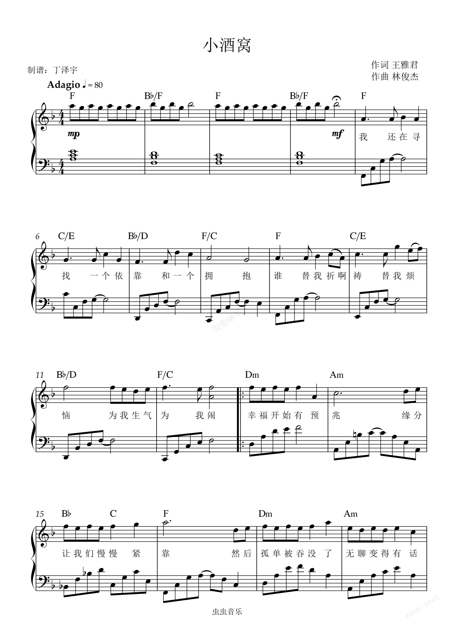 小酒窝-林俊杰 独奏弹唱谱 带歌词和弦标记