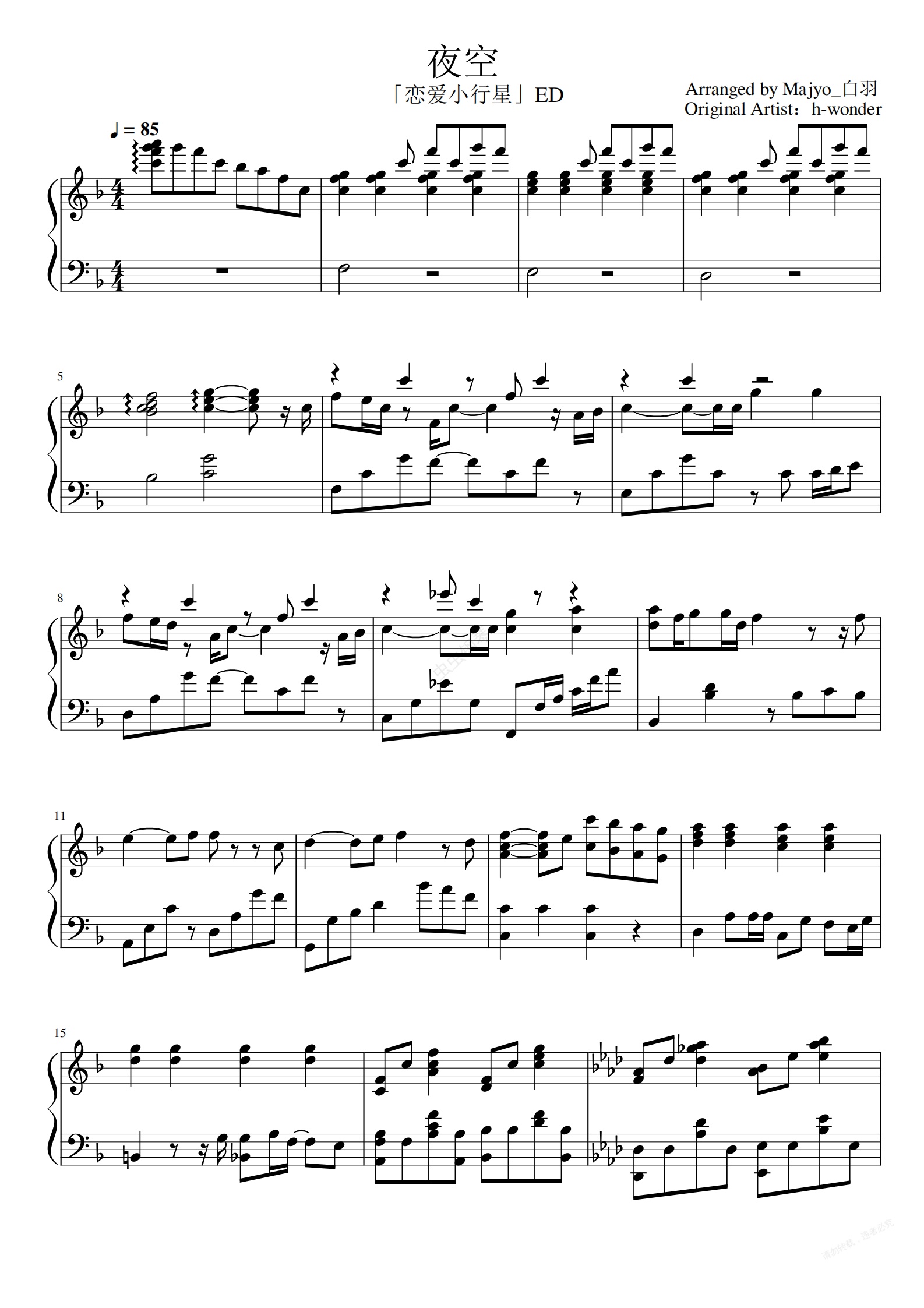 钢琴谱:恋爱小行星 ED-「夜空」