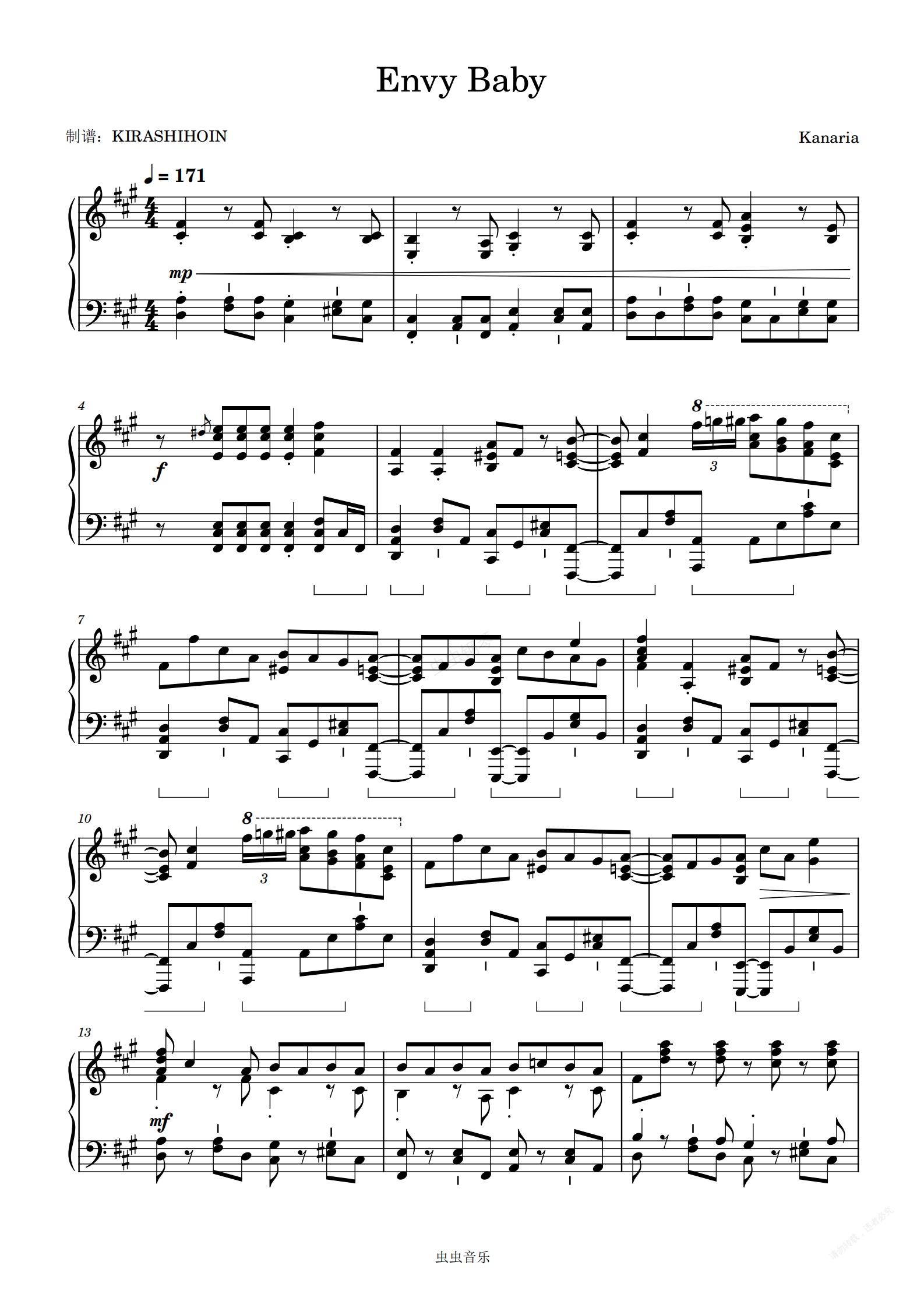 钢琴谱:Envy Baby/エンヴィーベイビー