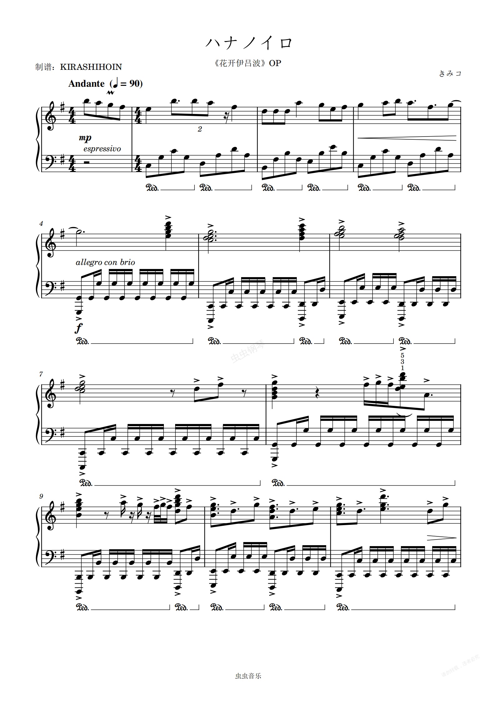 钢琴谱:ハナノイロ(《花开伊吕波》OP)