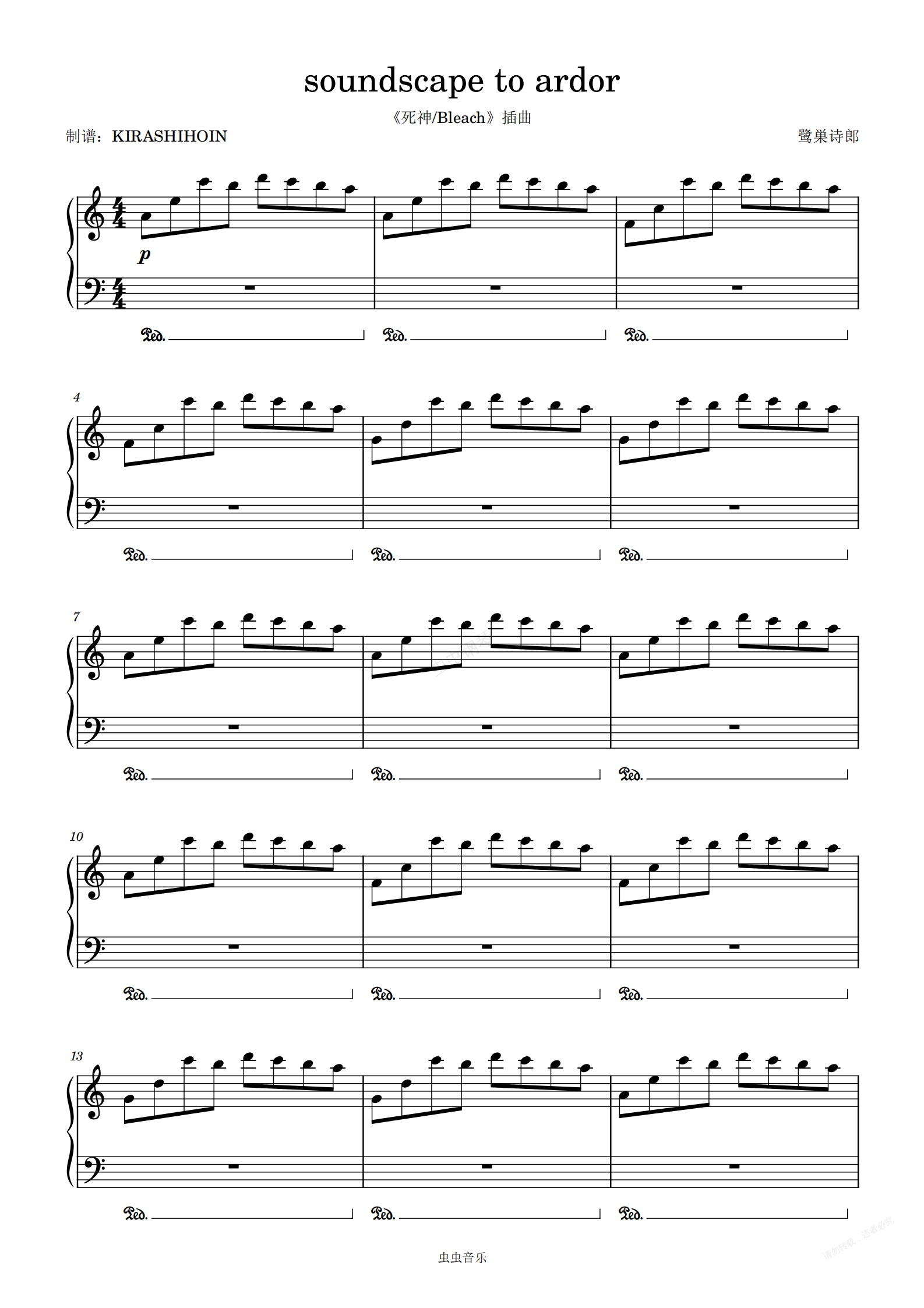 钢琴谱:soundscape to ardor(《死神/Bleach》插曲)