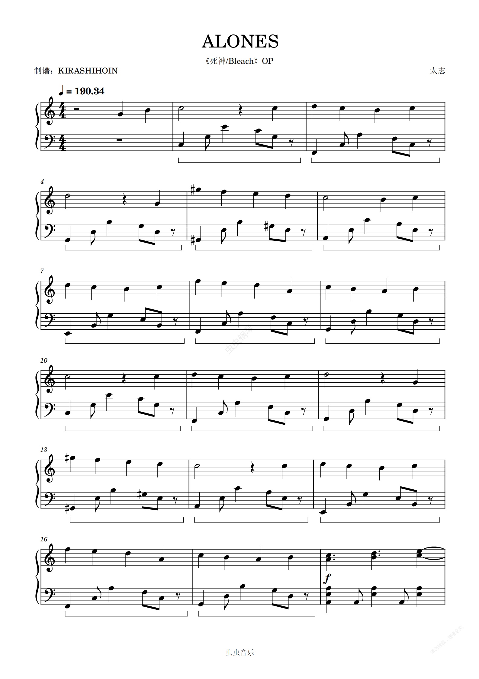 钢琴谱:ALONES(《死神/Bleach》OP)