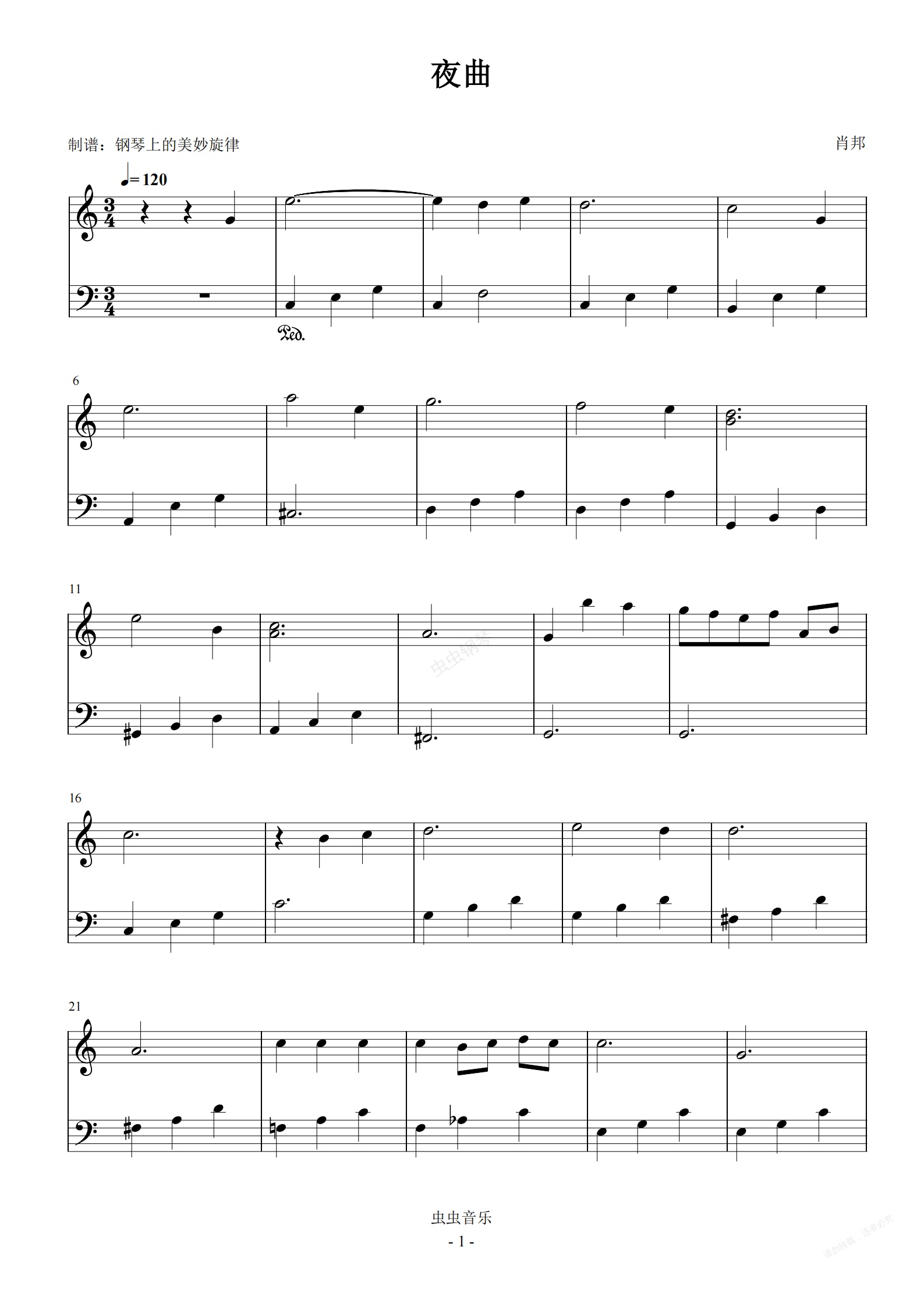钢琴谱:夜曲 肖邦 C调简易版 初学专用
