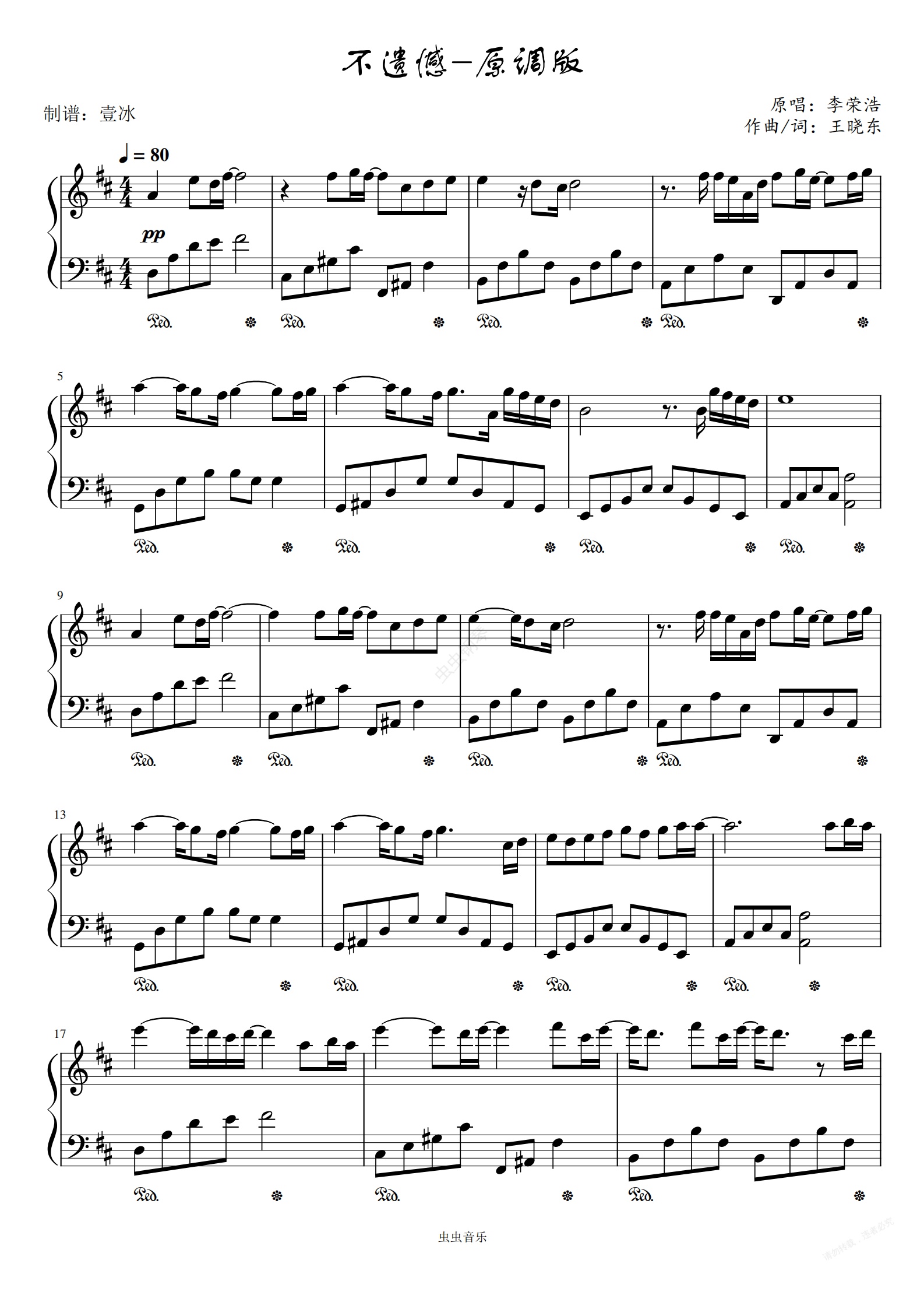 钢琴谱:不遗憾//《你的婚礼》主题曲-原调版