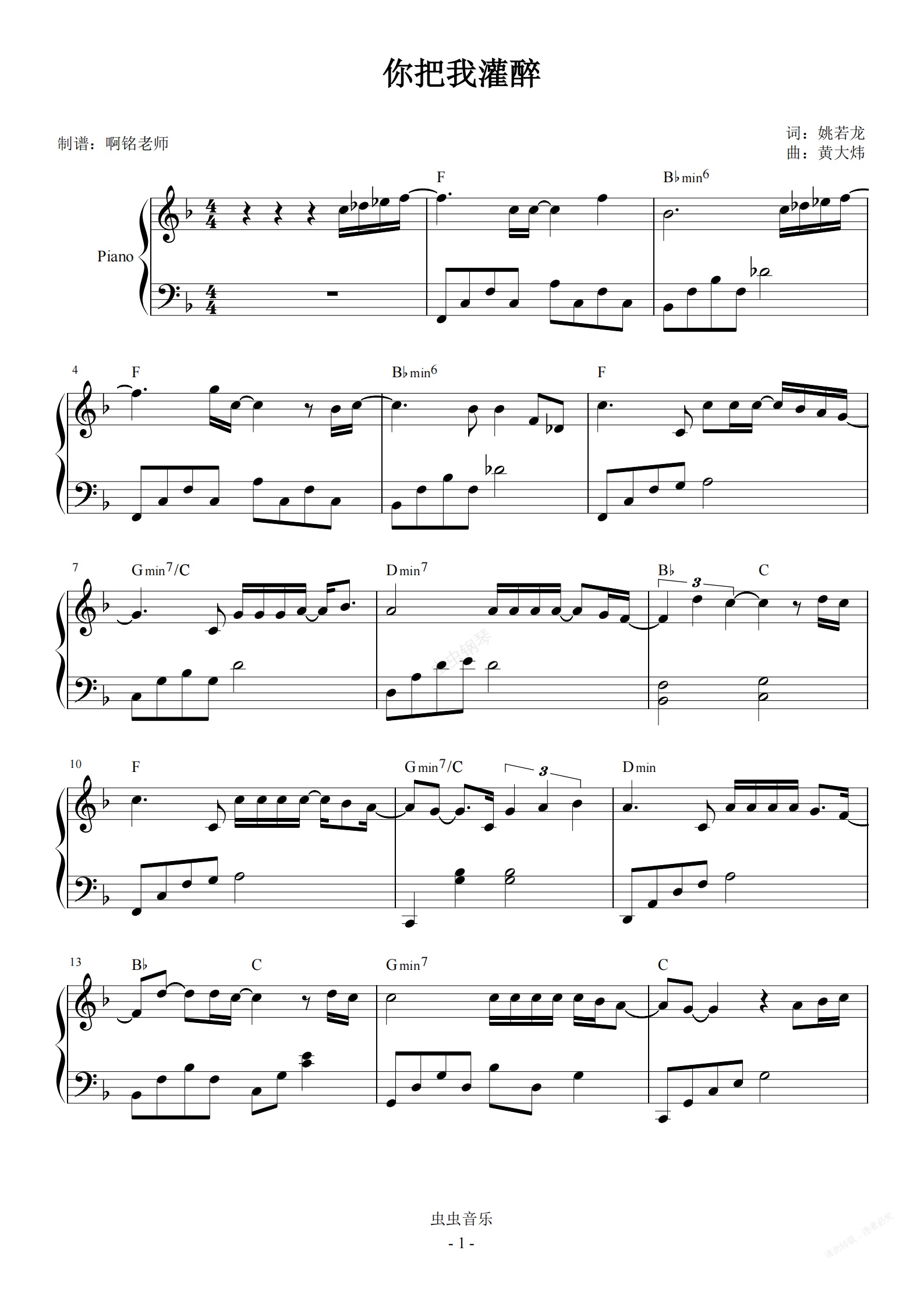 钢琴谱:你把我灌醉【简易 动听 怀旧】
