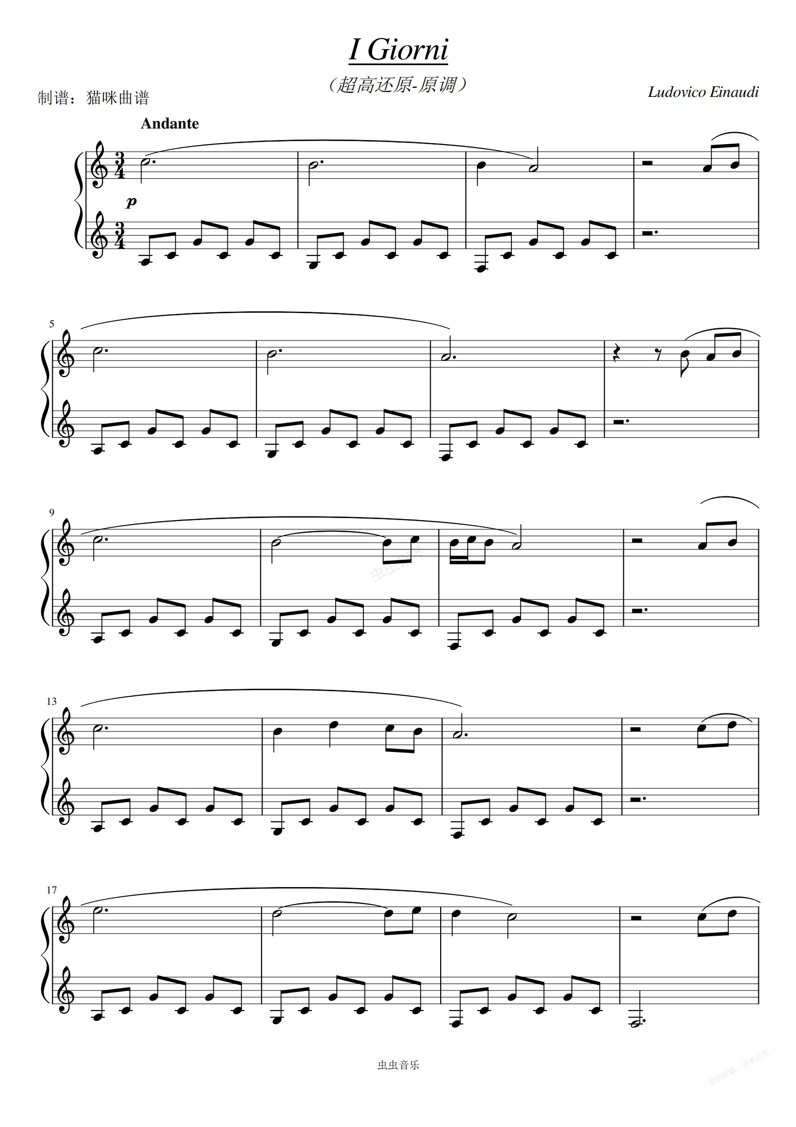 钢琴谱:《I Giorni》超高还原-C调