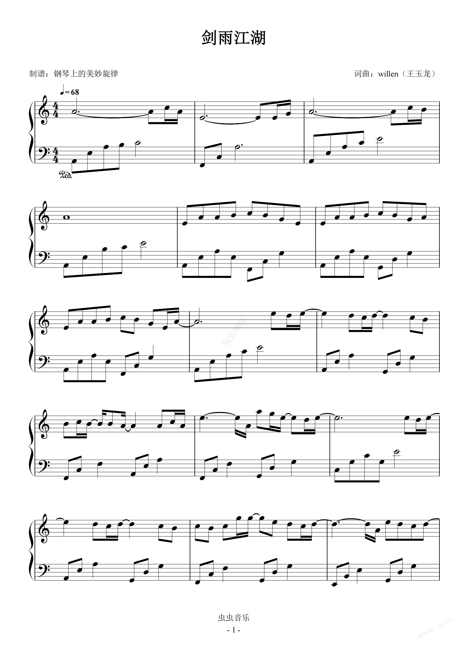 钢琴谱:剑雨江湖 C调简易版 流行 TNT时代少年团