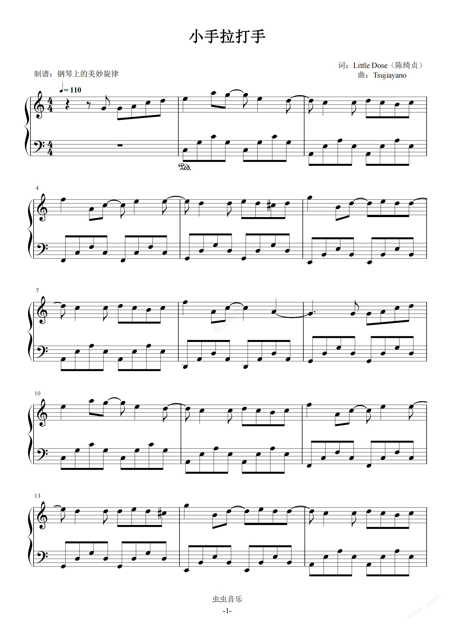 钢琴谱:小手拉大手 梁静茹 C调简易版