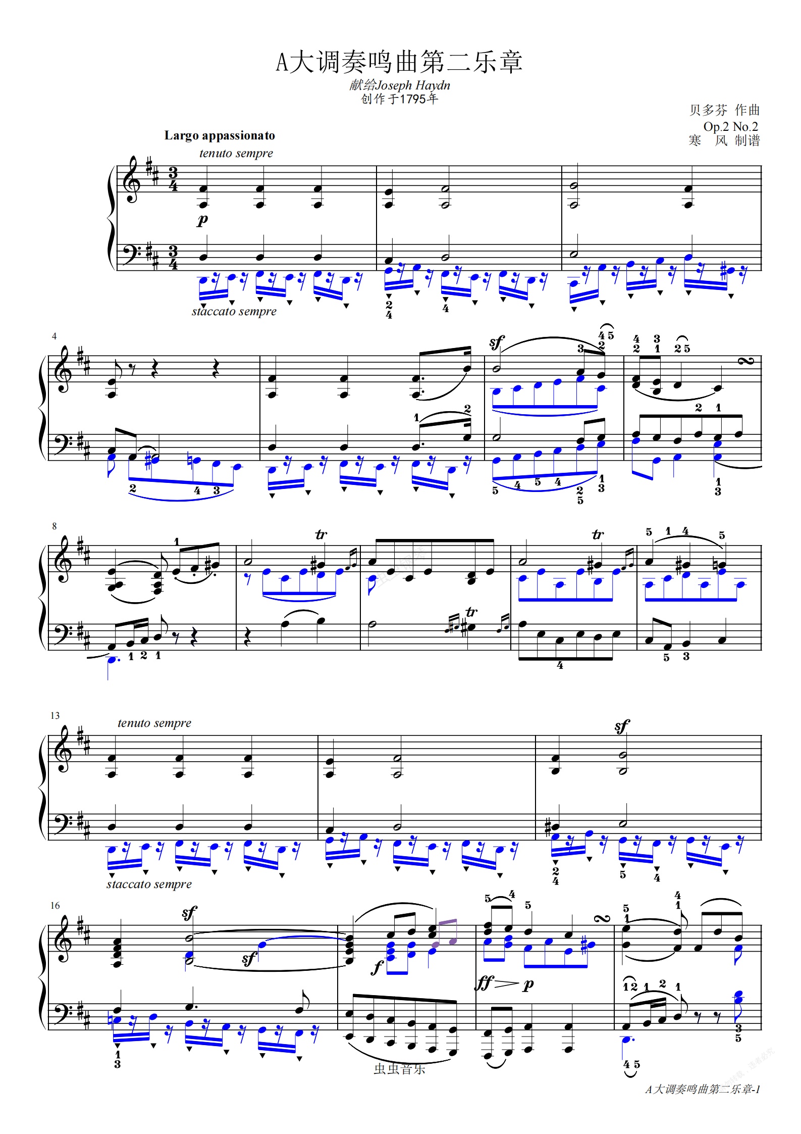钢琴谱:贝多芬-A大调第2钢琴奏鸣曲第二乐章