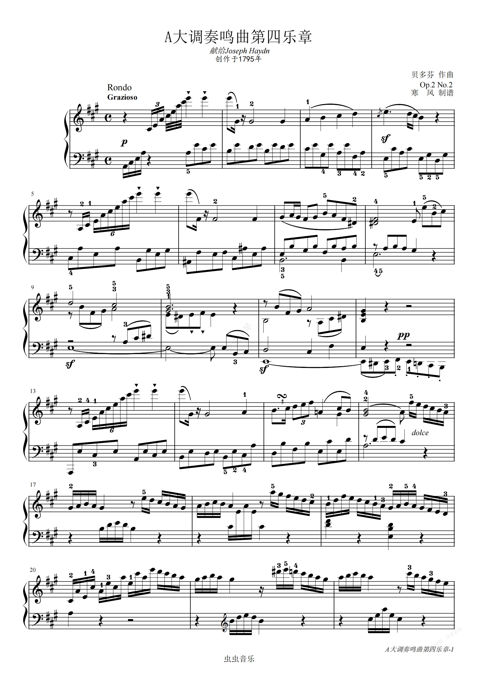 钢琴谱:贝多芬-A大调第2钢琴奏鸣曲第四乐章