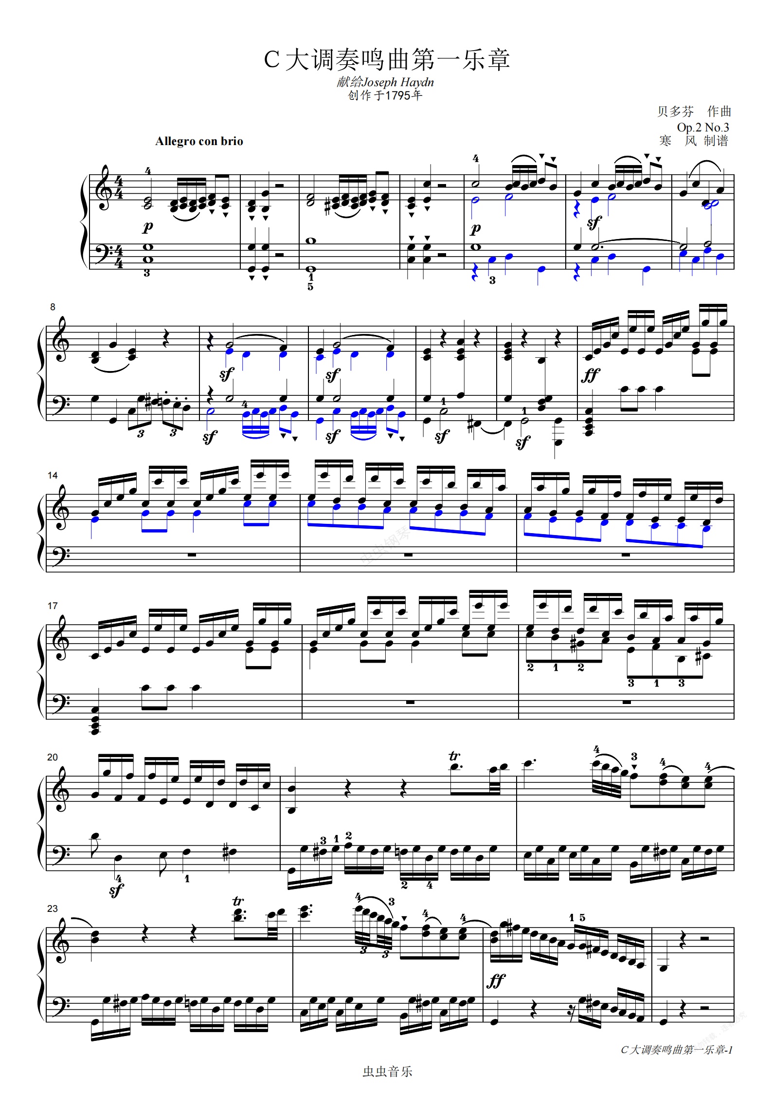 钢琴谱:贝多芬-C大调第3钢琴奏鸣曲第一乐章