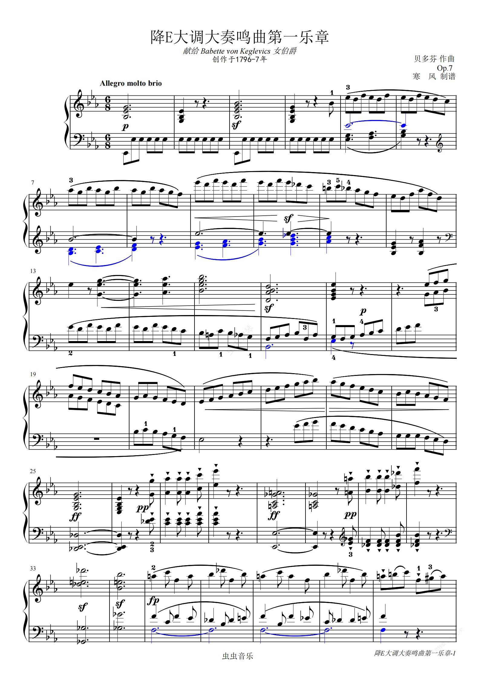 钢琴谱:贝多芬-降E大调第4钢琴奏鸣曲第一乐章