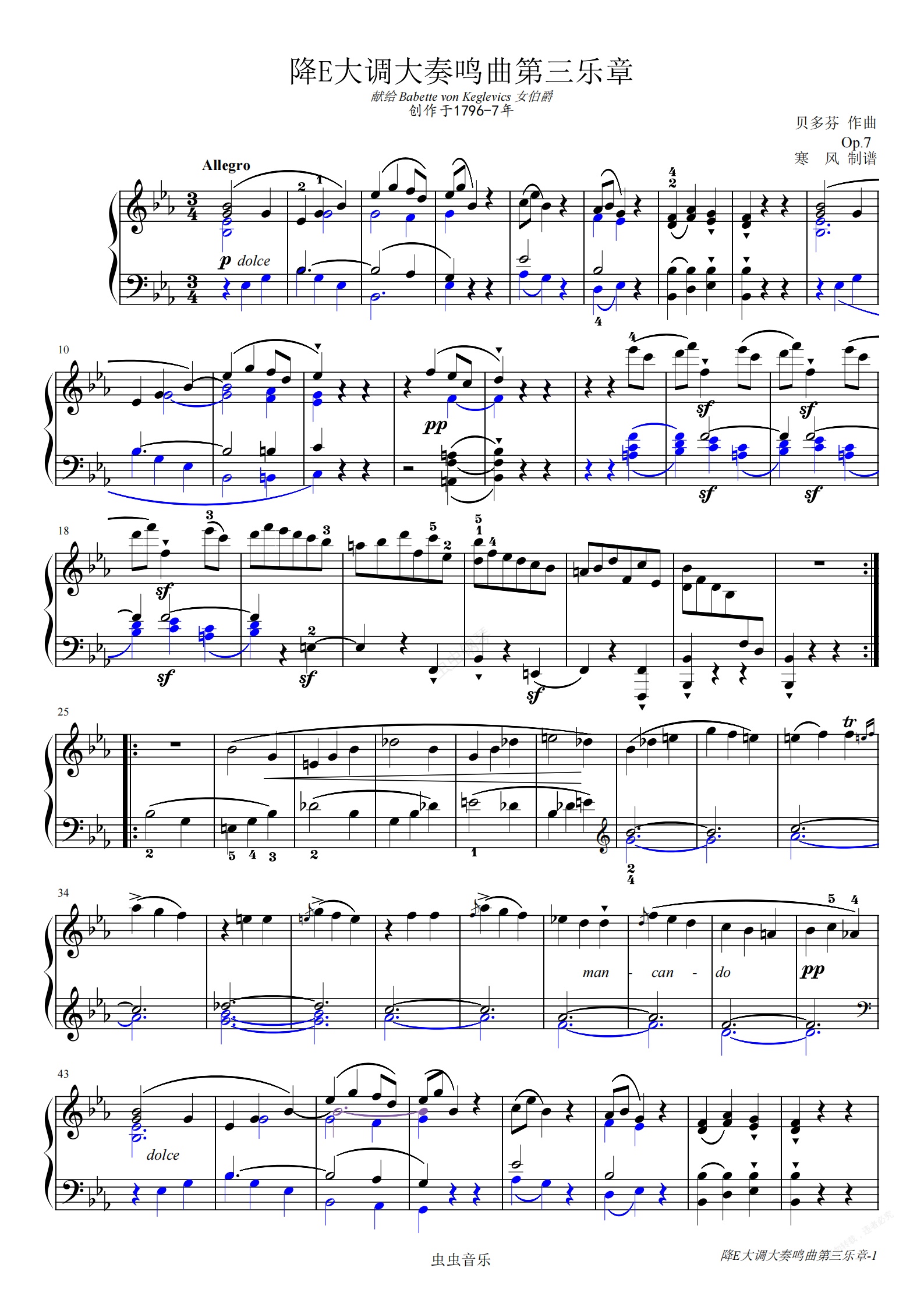 钢琴谱:贝多芬-降E大调第4钢琴奏鸣曲第三乐章
