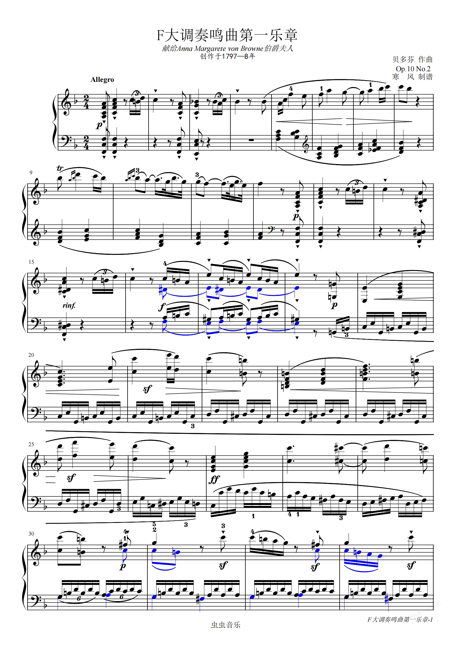 钢琴谱:贝多芬-F大调第6钢琴奏鸣曲第一乐章