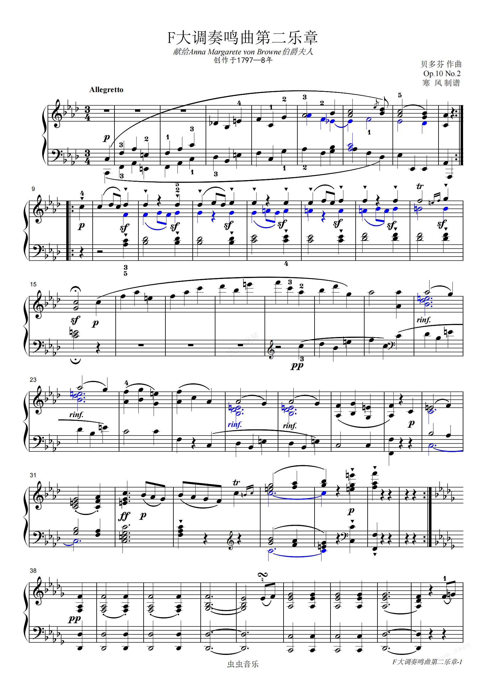 钢琴谱:贝多芬-F大调第6钢琴奏鸣曲第二乐章
