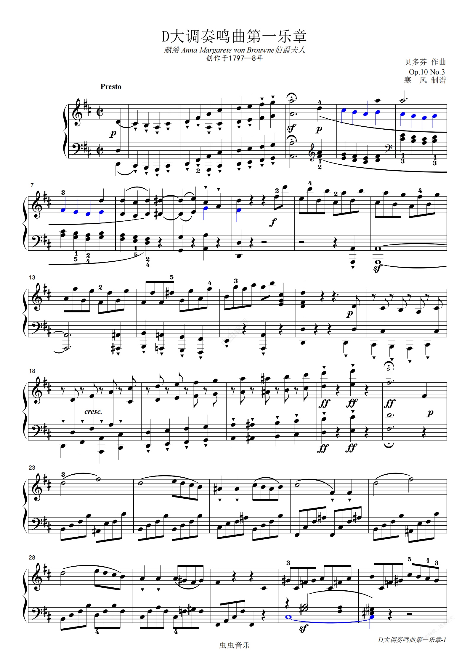 钢琴谱:贝多芬-D大调第7钢琴奏鸣曲第一乐章