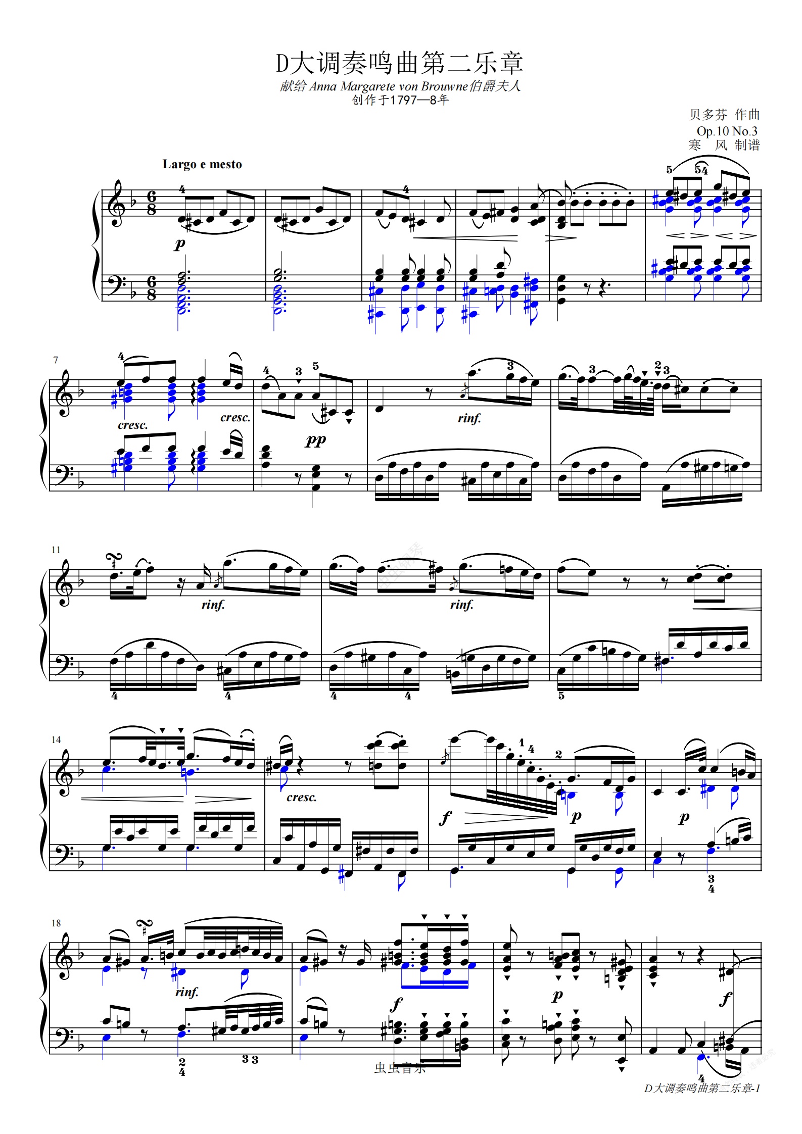 钢琴谱:贝多芬-D大调第7钢琴奏鸣曲第二乐章