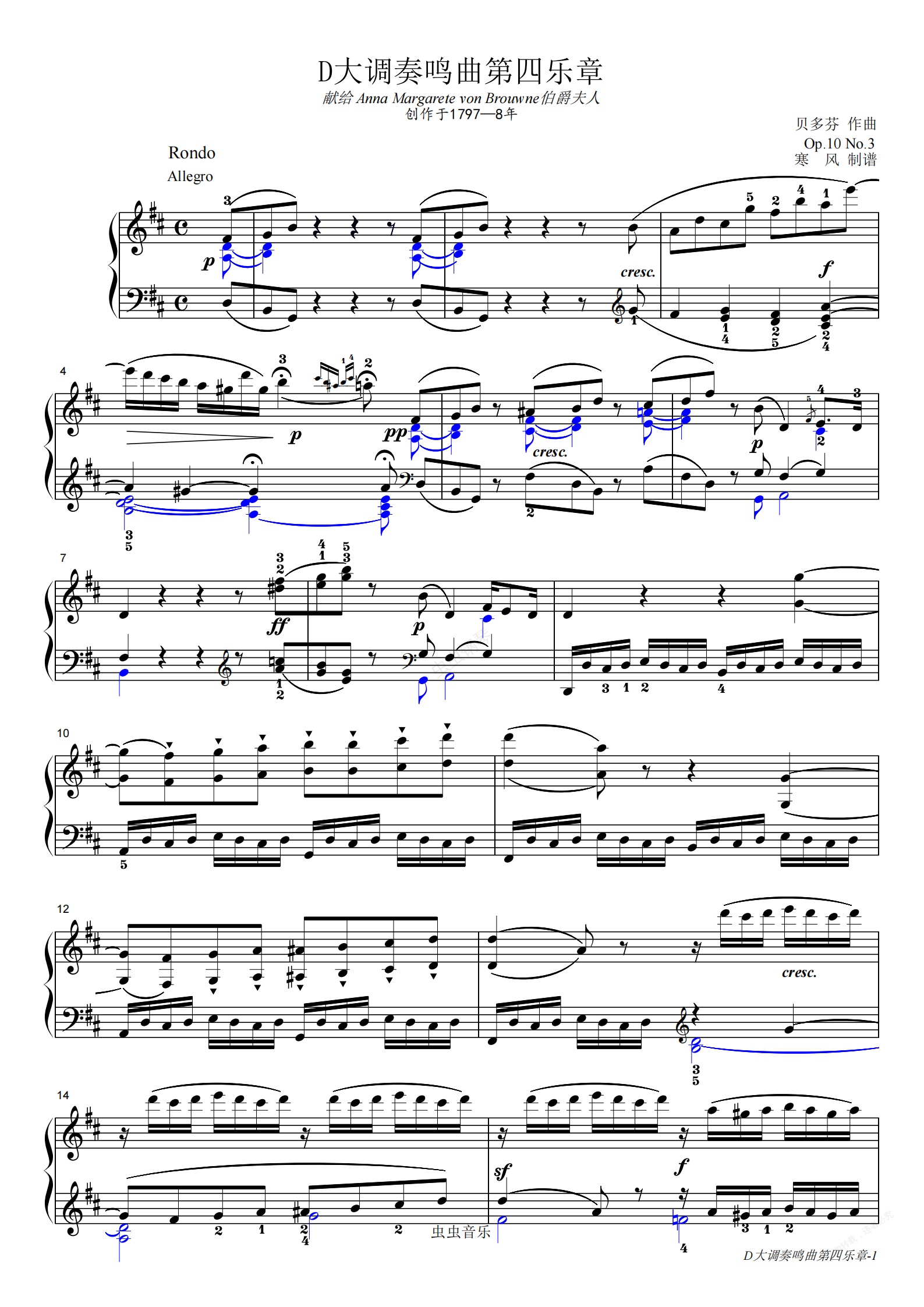 钢琴谱:贝多芬-D大调第7钢琴奏鸣曲第四乐章