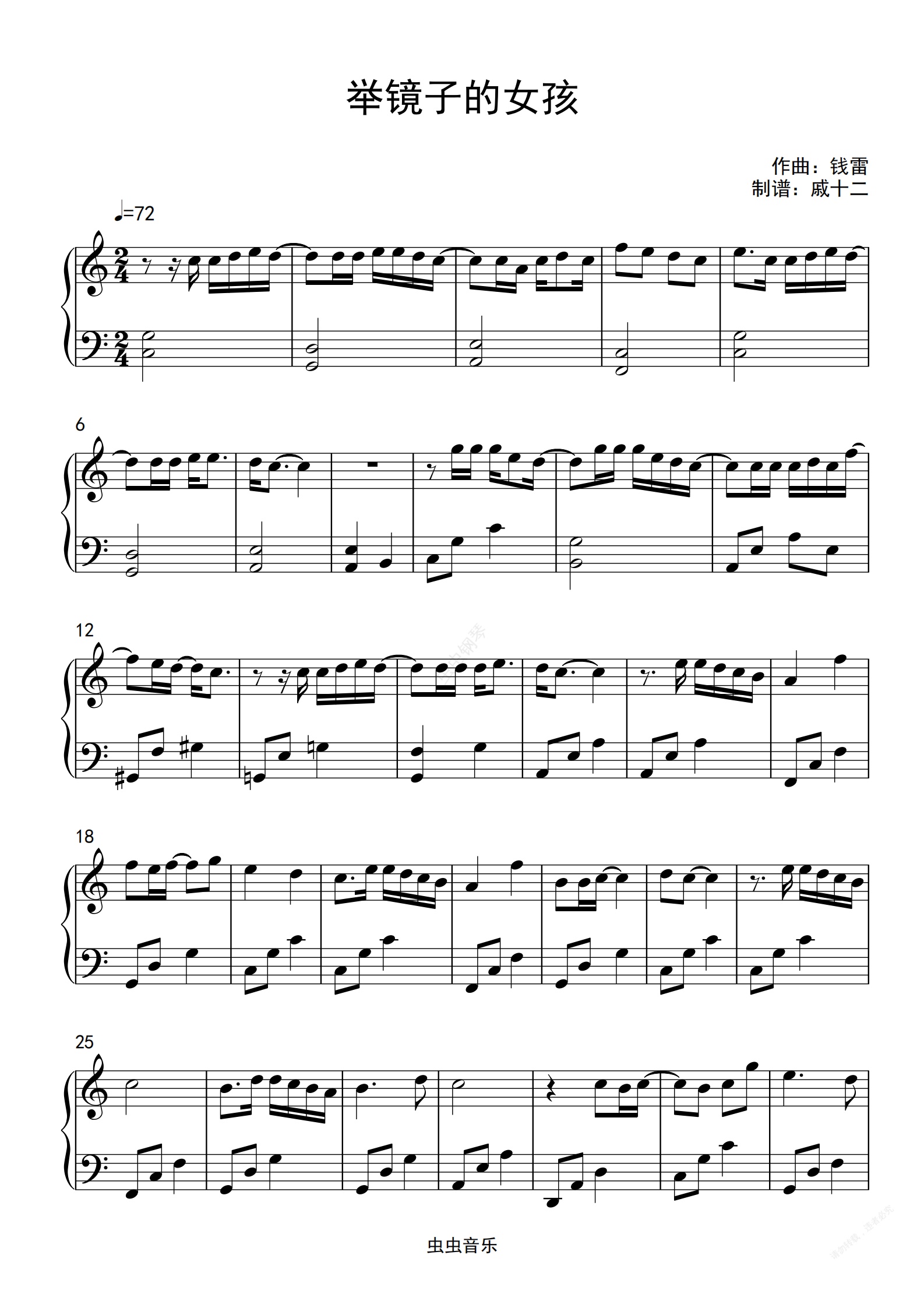 钢琴谱:举镜子的女孩《我的姐姐》推广曲-C调简单版