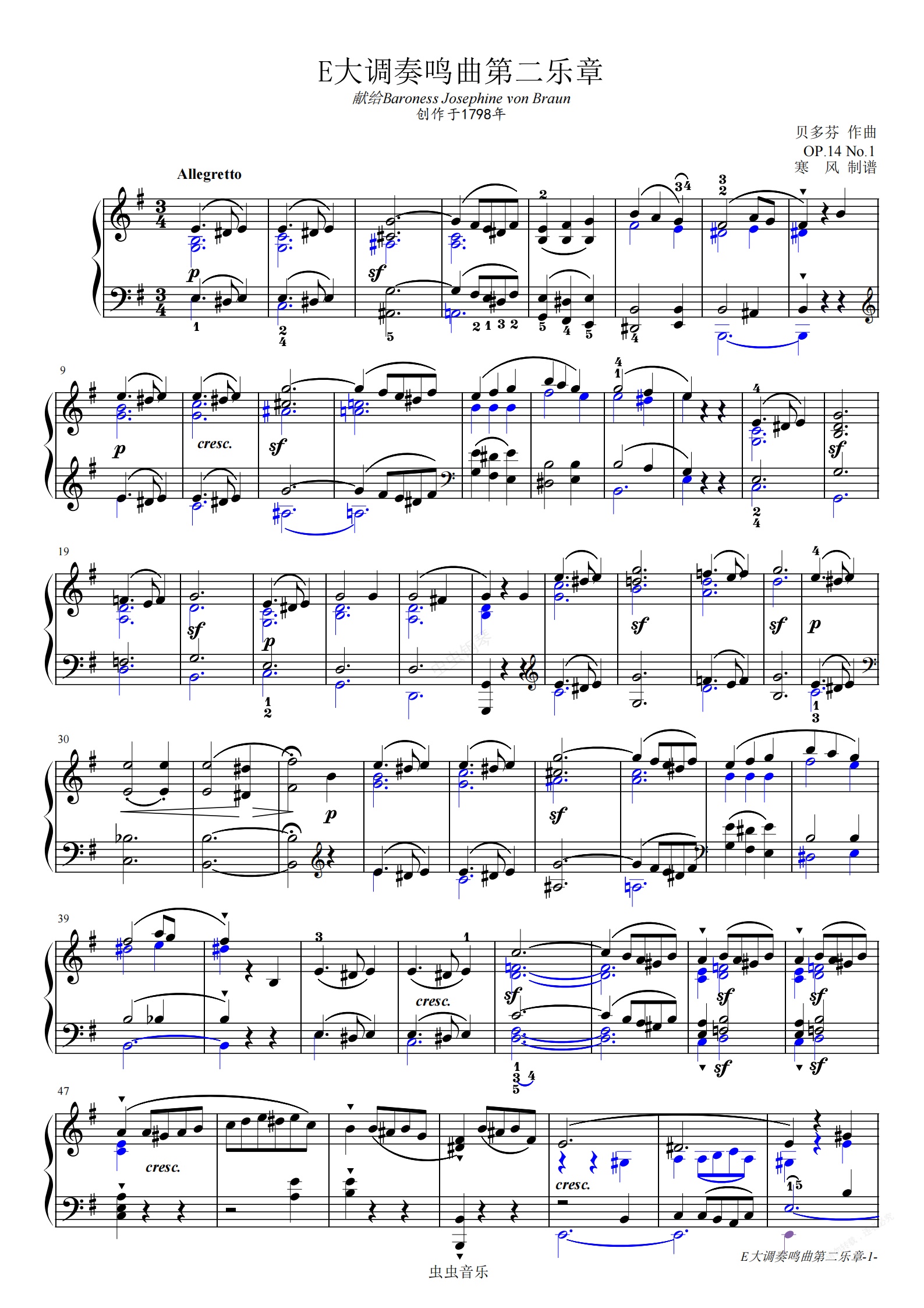 钢琴谱:贝多芬-E大调第9钢琴奏鸣曲第二乐章