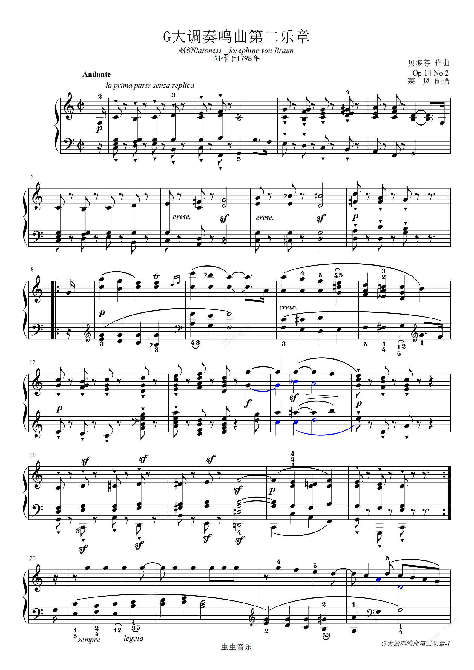 钢琴谱:贝多芬-G大调第10钢琴奏鸣曲第二乐章